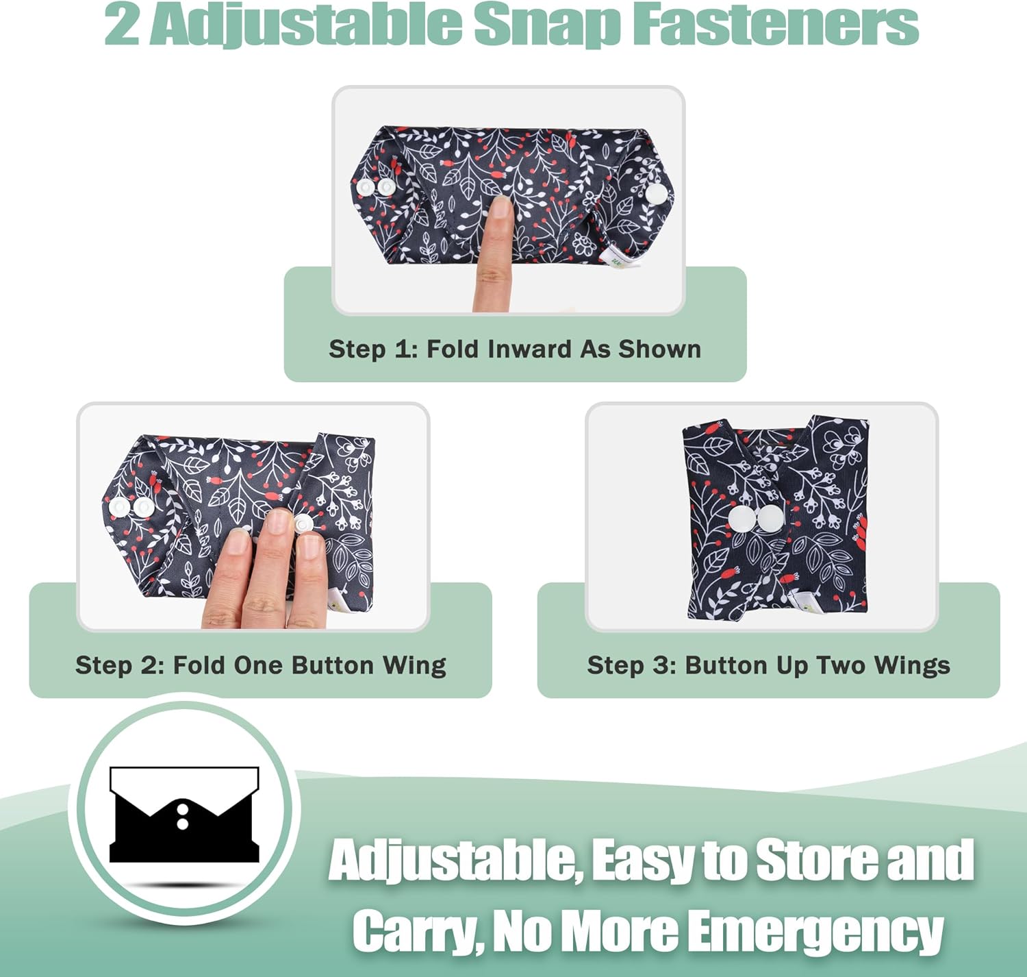 - LOVELY PRINT leak-free outer of Cloth Sanitary Napkin and comfort of the softer, charcoal layer against you. Great as period panties too.Fold over and snap into place.Never feel embarrassing