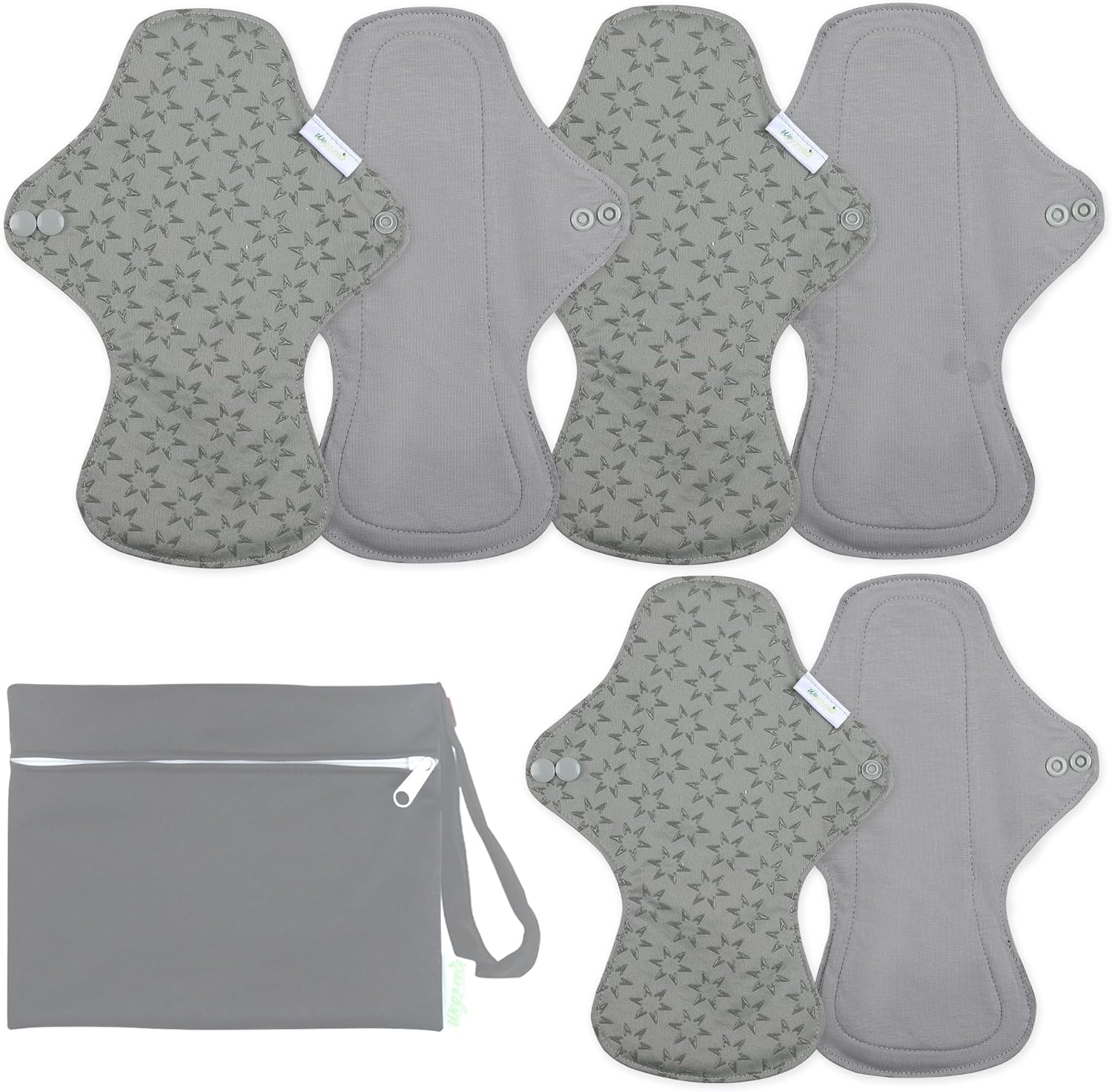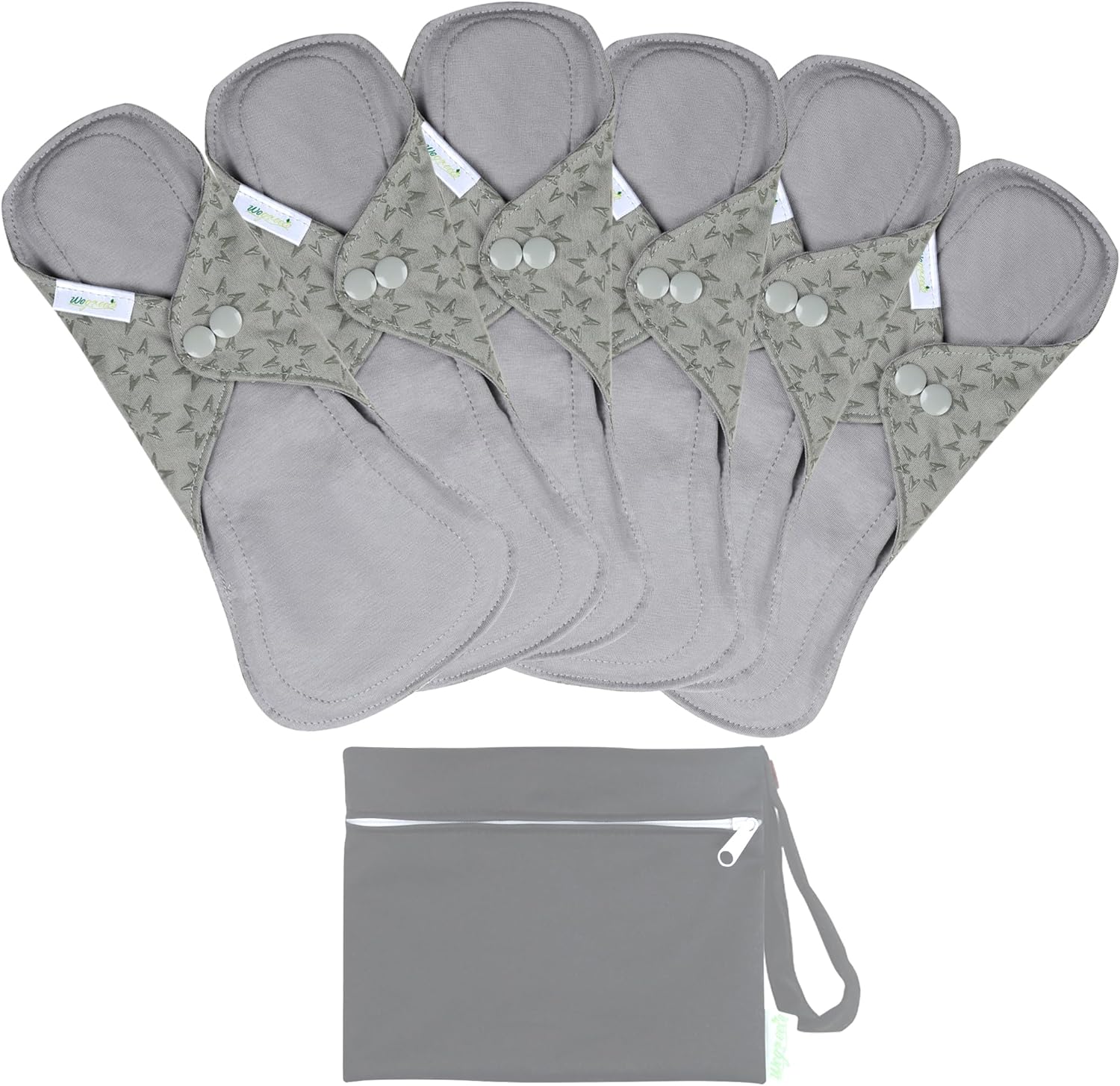 wegreeco 6 Pcs Reusable Menstrual Pads, Ultra Absorbent Cloth Pads for Heavy Flow, Sanitary for Teens, Women, Nonslip, Grey Inner, Grey Outer, Small