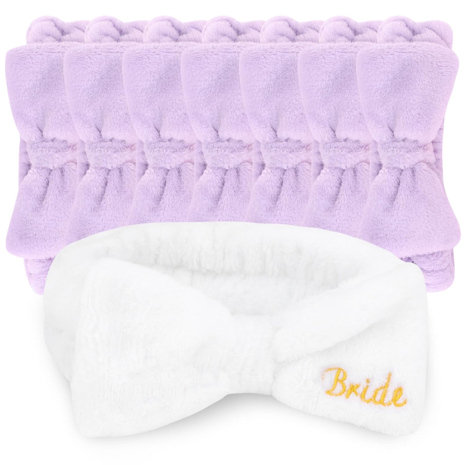 - 💗 The perfect bachelorette themed party favors: 1 white bridal spa headband +7 purple bridesmaid spa headbands.