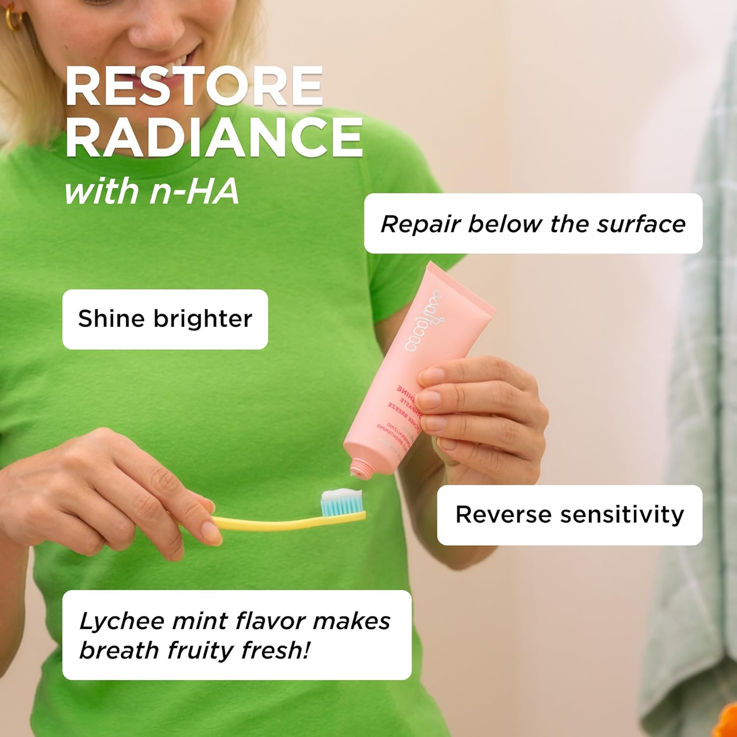 - CATERS TO THOSE WITH SENSITIVE TEETH: After just 1 day of toothbrushing with Cocoshine, the n-HA fills in the tiny tunnels that lead to your nerves. (Intertek Laboratory Report, 8/25/2023).