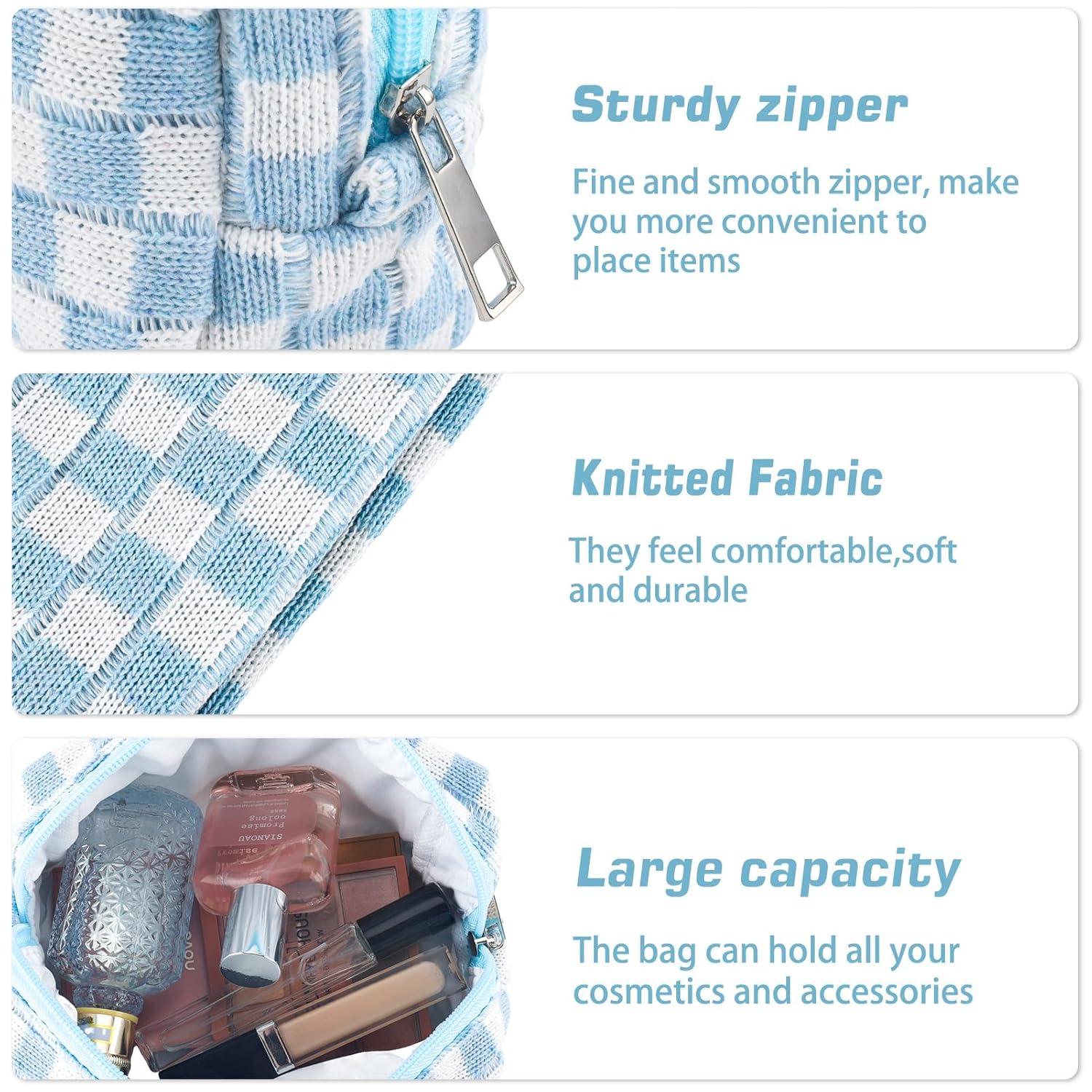 - LARGE CAPACITY AND PREMIUM MATERIAL: The cute makeup bag measure 7×4 inches, easy to carry. The checkered makeup bag is made of soft knitted fabric, easy to clean. The smaller ones can be used as pencil case or pencil pouch. This makeup travel bag can also hold small items such as makeup, skincare products, lipstick, eye shadow, eyebrow brush, etc. Makeup storage bag for women toiletries