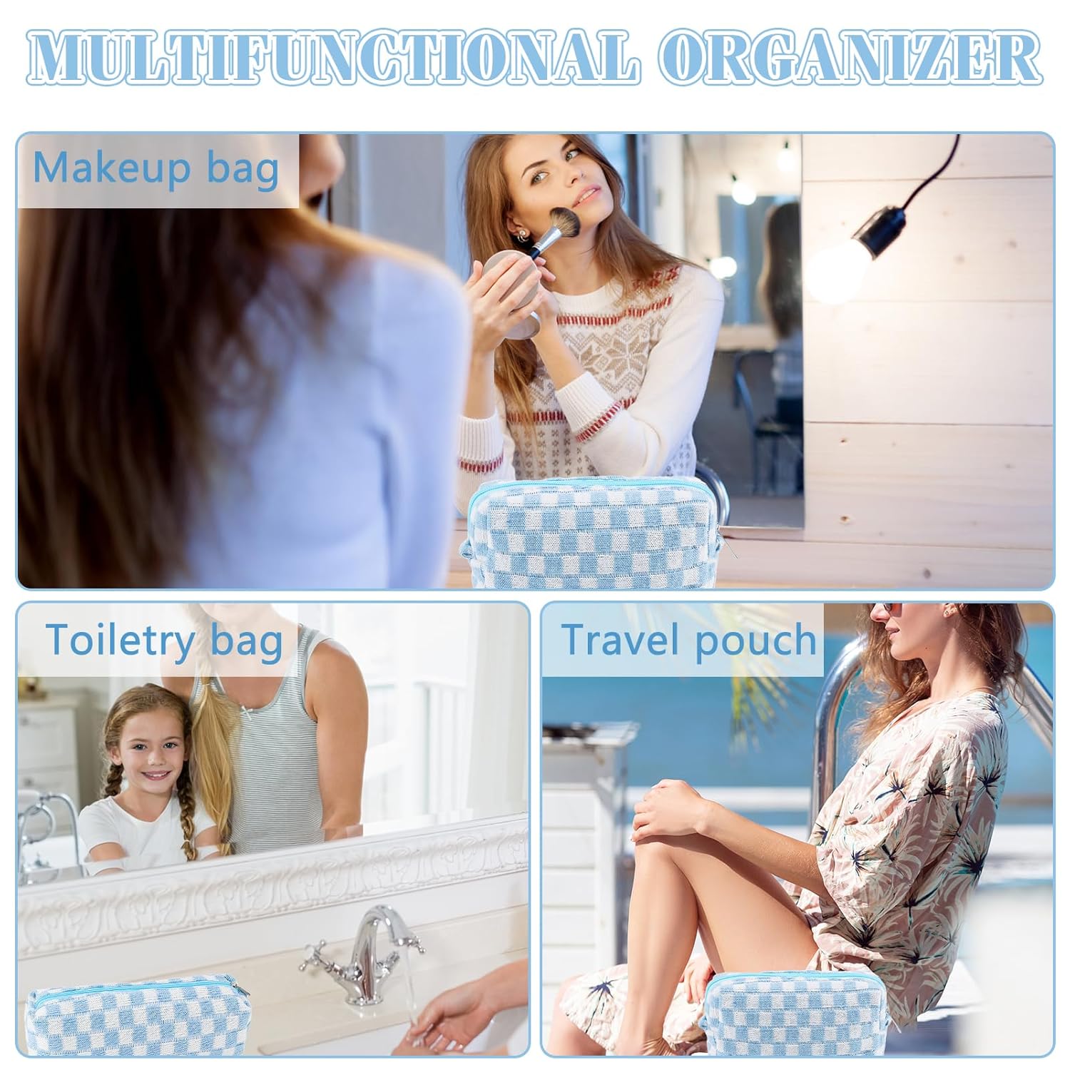 - CHECKERED TRAVEL POUCH: The checkered cosmetic bag can be used as a toiletry bag or pen bags. Daily makeup, skin care samples, mobile phone can be put in the bag, and can also be used as a purse. The checkered makeup pouch can be used while traveling, since makeup bags are lightweight and don't take up a lot of space in your suitcase. Makeup pouches for organization