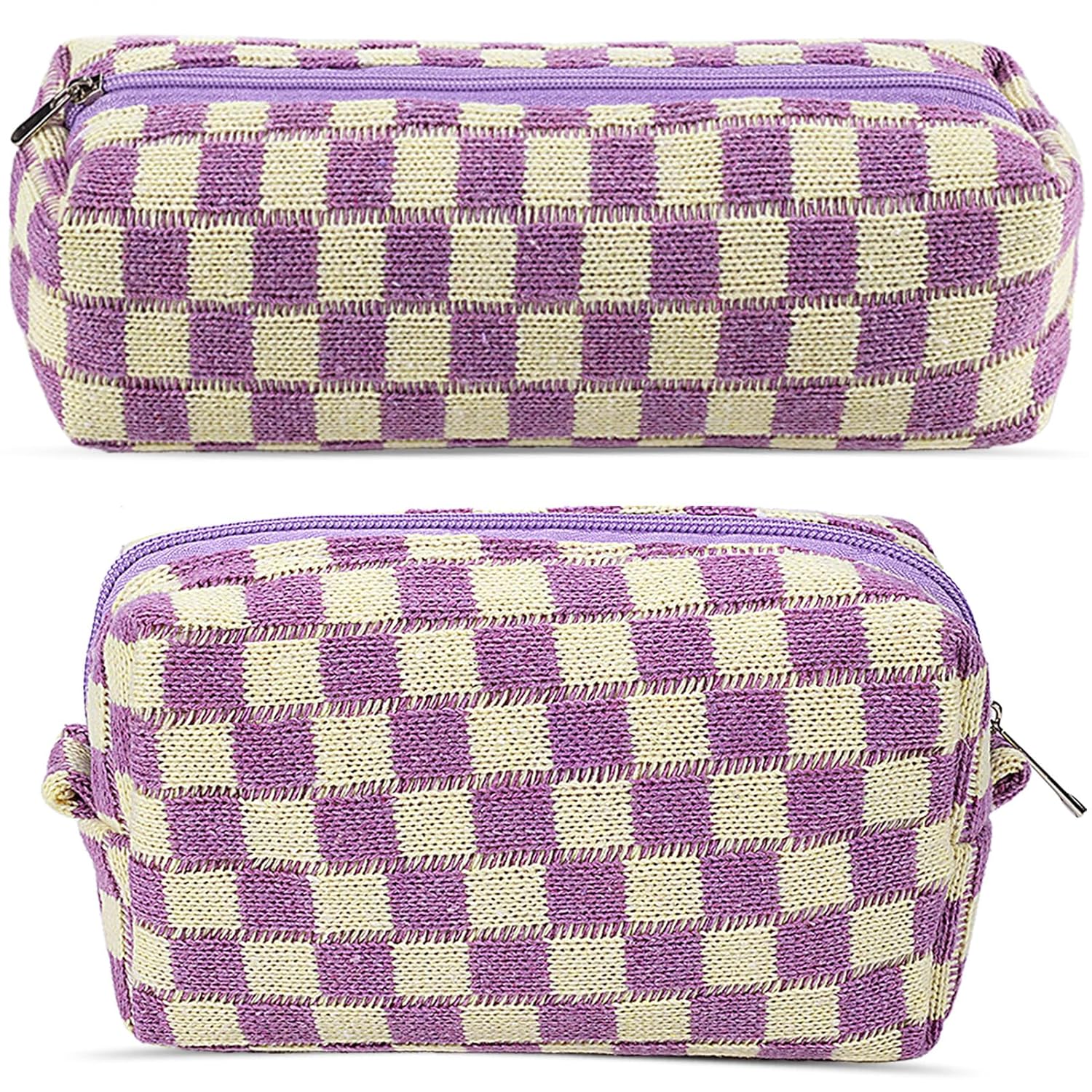 - LIGHT WEIGHT AND EXCELLENT WORKMANSHIP: The cute makeup pouch is made of soft knitted fabric and is comfortable, soft and lightweight. Checkered travel make up bag folds up when not in use and fits in a large bag without taking up space. The metal zipper of the cute pencil case keep your items secure and organized inside. Cosmetic bag accessories set for women