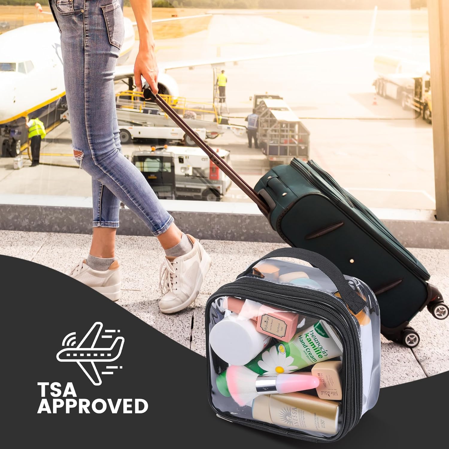 - TSA Liquids Travel Bag: Easily navigate airport security with our see-through plastic makeup bag for your liquids and gels