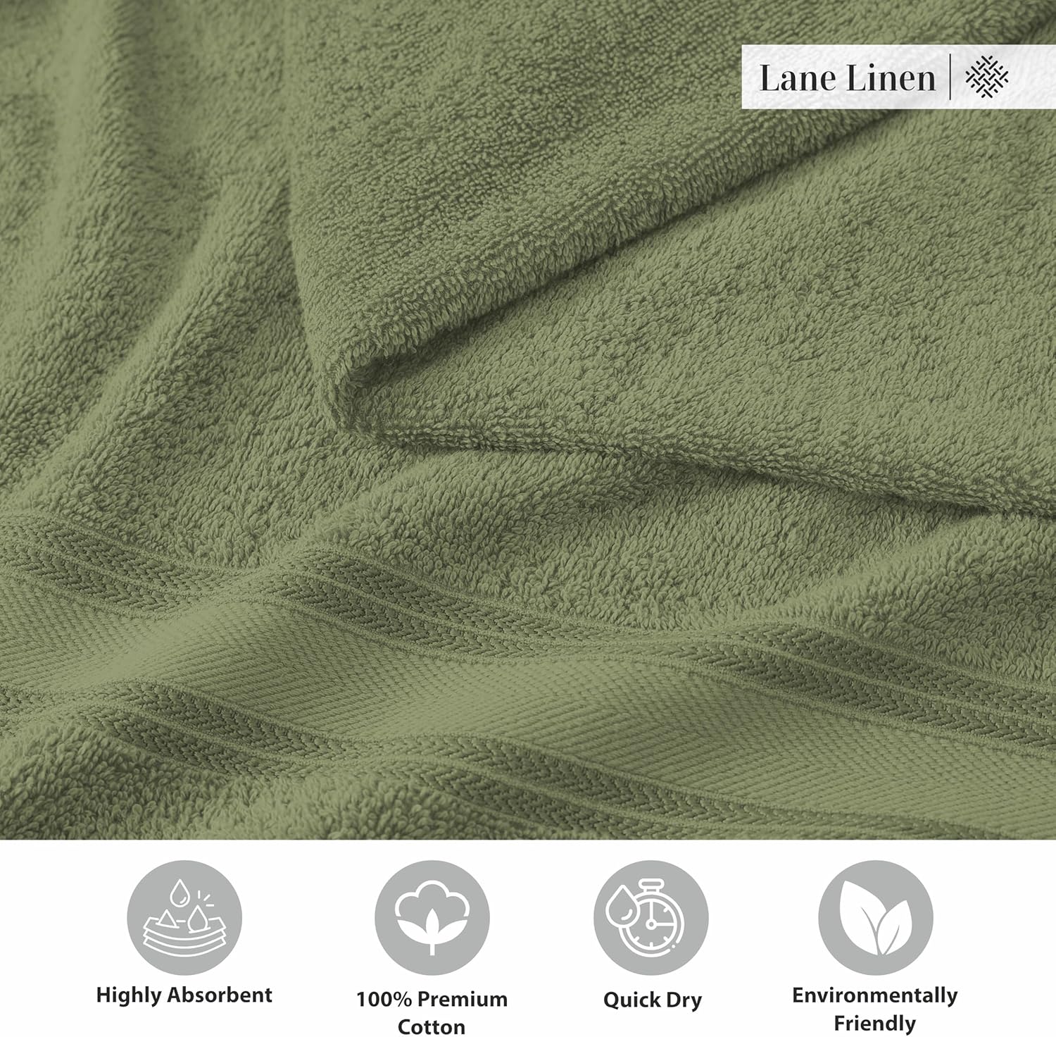 Lane Linen 100% Cotton 4 Pack Bath Towels (30"x60") - Zero Twist, Mercerized Cotton Bathroom Towel Set - Quick Dry, Extra Soft & Absorbent Large Bath Towels - Tumble Dry Regains Fluffiness - Oil Green