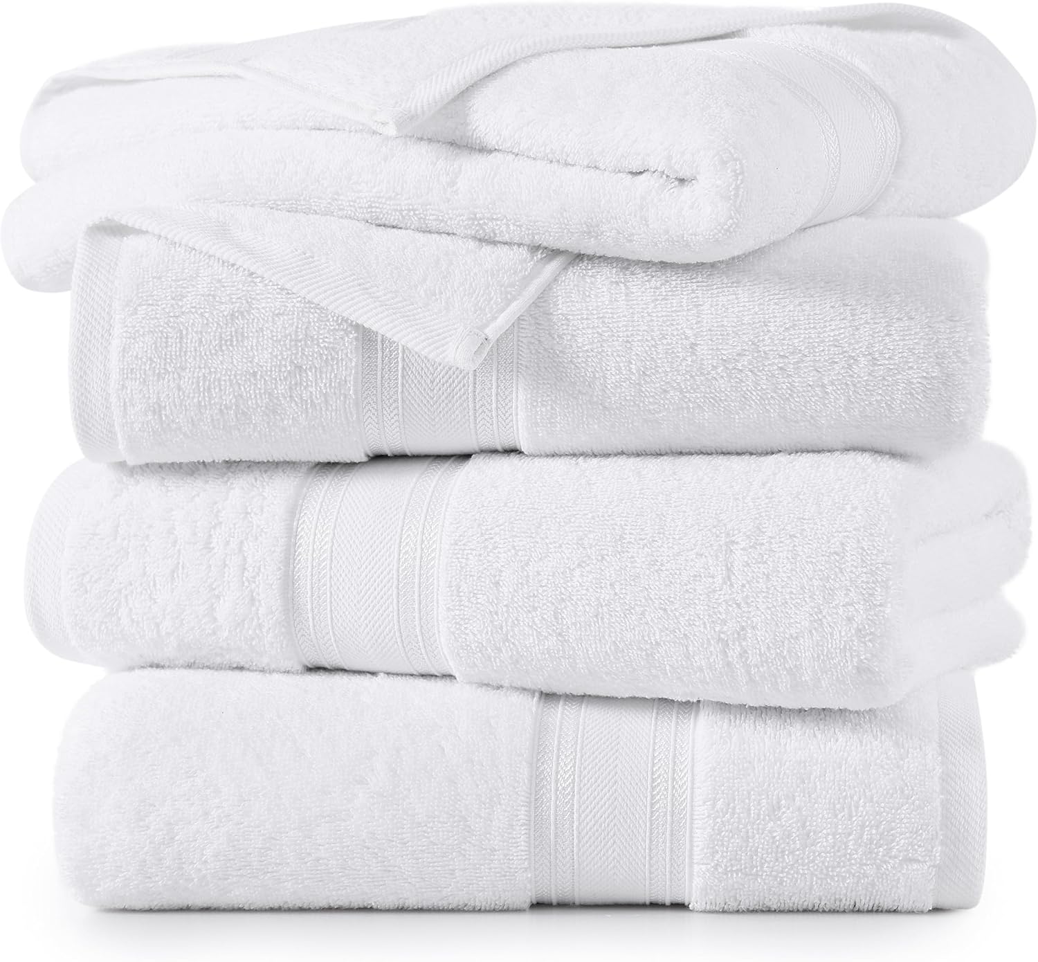 LANE LINEN 100% Cotton 4 Pack Bath Towels (28"x54") - Zero Twist, Cotton - Large Towels for Bathroom - Quick Drying, Highly Soft & Absorbent Shower Towel Set - Hotel & Spa Quality - White Towel Set