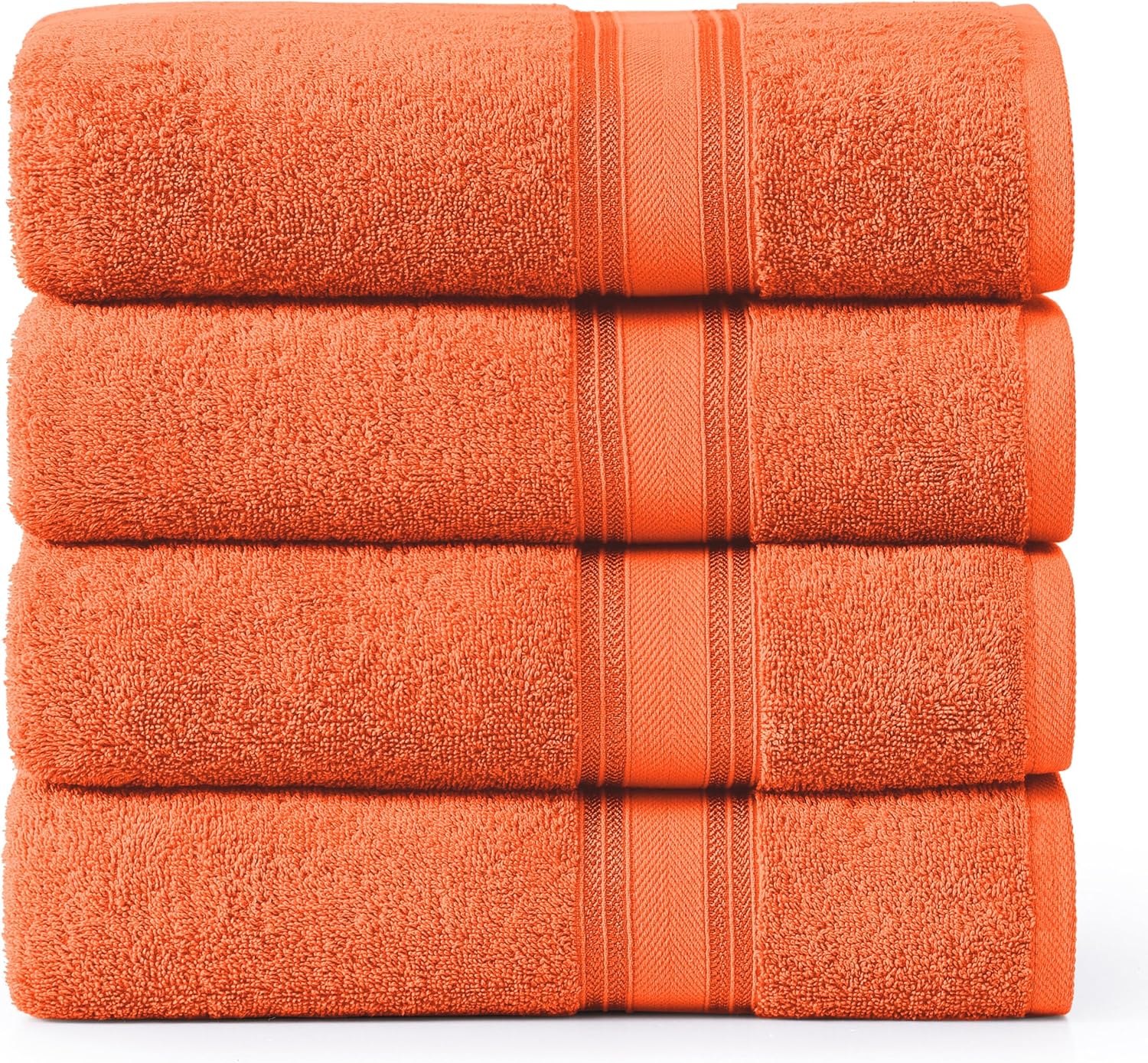 Lane Linen 100% Cotton 4 Pack Bath Towels (30"x60") - Zero Twist, Mercerized Cotton Towels Set for Bathroom - Quick Dry, Soft & Absorbent Large Bath Towel Set - Salon, Spa & Hotel Quality - Tiger Lily