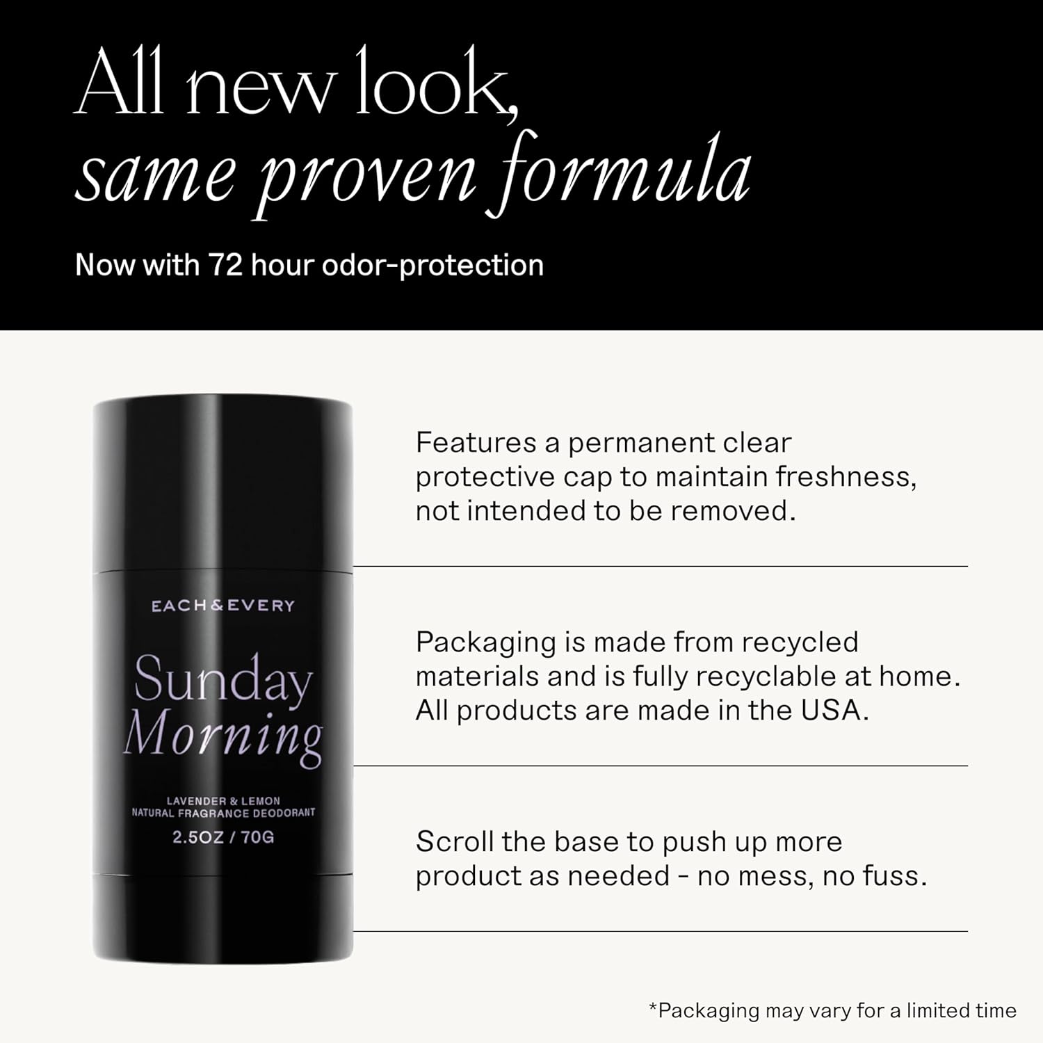 - Simple Ingredients That Work - We believe each and every ingredient matters. That's why we partner with individual farmers and distillers to ensure quality, safety and transparency in each all natural deodorant.