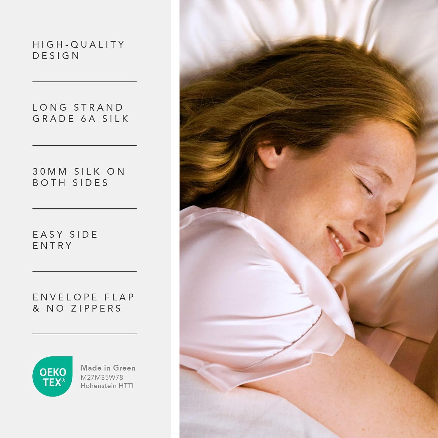 - LUXURIOUS BEDDING: Our pillowcase is made of 100% long strand, Grade 6A Pure Mulberry Silk. There is silk on BOTH sides of the pillowcase! The density of silk is measured by momme. The higher the momme, the more silk. We have added a unique side entry that is slightly offset. The pillowcase can be used as both a sham and pillowcase. An oversized envelope flap ensures the pillow will remain securely inside your pillowcase.