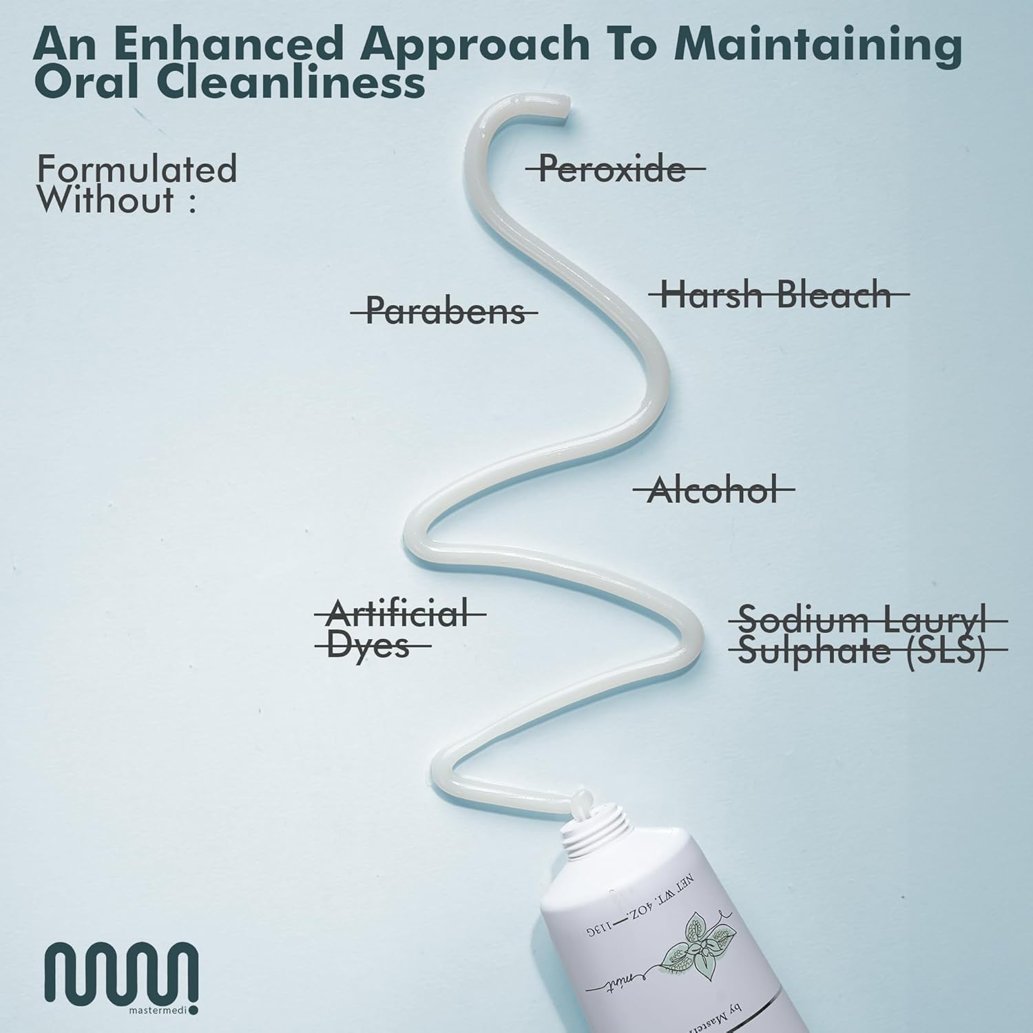 MasterMedi Nano Hydroxyapatite Toothpaste (Inspired by 10% nHA Formulas), Fluoride-Free, Whitening, Sensitive Teeth Care, Enamel Support, SLS Free, Xylitol, Magic Mint, 4 Oz (Pack of 3)