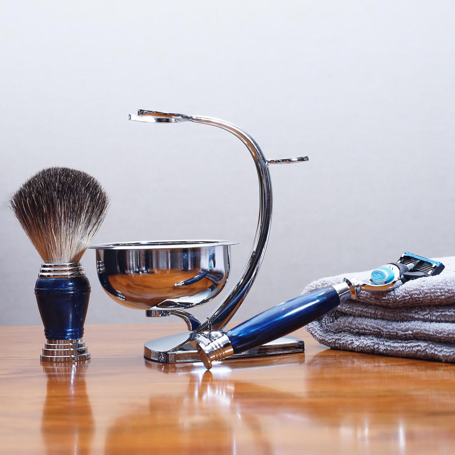 - Ideal Shaving Kit:4 in 1 wet shave kit include manual wet 5-layer Fusion safetry razor blade,badger hair Lather brush,soap bowl and heavy weight magnet design stand holder.