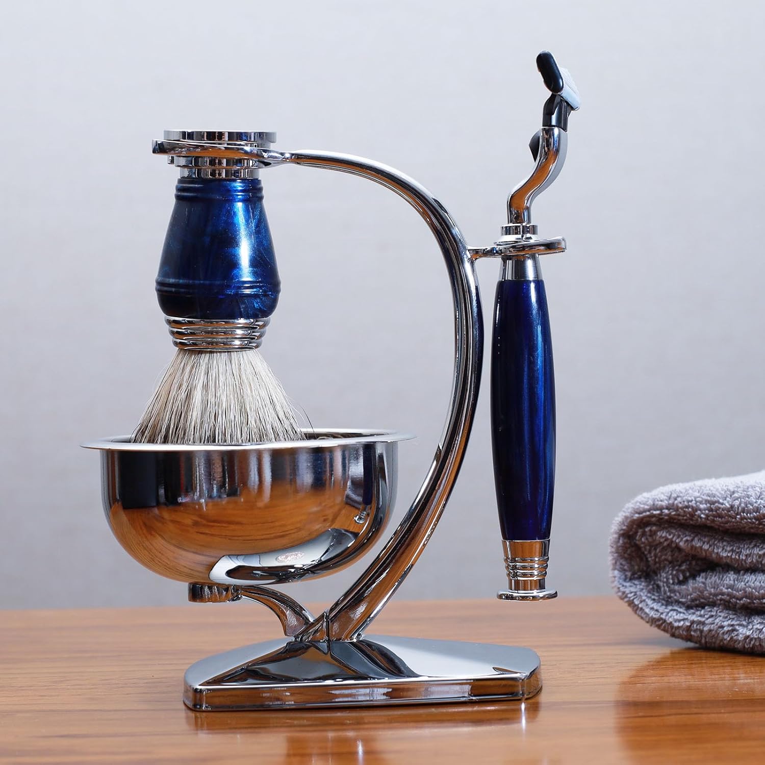 - Ideal Shaving Kit:4 in 1 wet shave kit include manual wet M3 3-layer Mach 3 safetry razor blade,badger hair Lather shaving brush,soap bowl and heavy weight magnet design stand holder.
