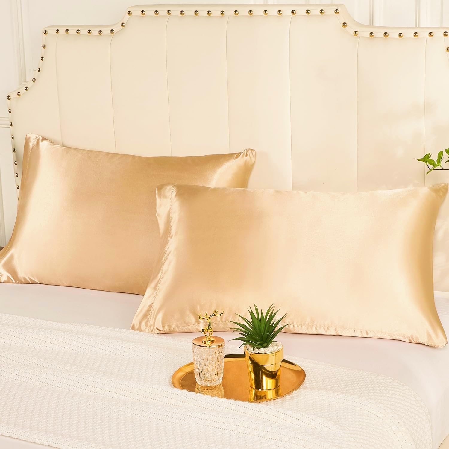 - 【100% Polyester Satin】: Satin Pillowcases are made of 100% satin polyester fabric for optimal softness and easy care used is as soft as a silk pillowcase. High-quality satin is more sturdy than silk pillowcases at a reasonable price - Glorious and luxurious satin pillowcase provides the smooth and resilient feeling to help you establish a sound sleep all night.