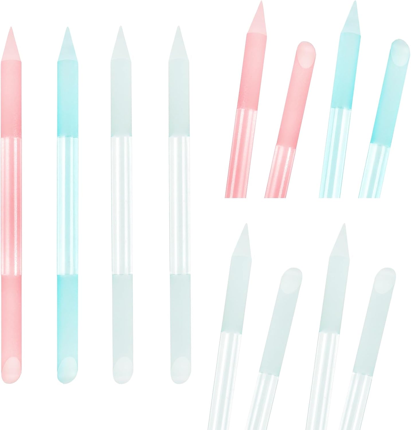 4Pcs Glass Cuticle Pusher, Crystal Cuticle Pusher Glass File, Dual-Ended Manicure Stick, Professional Precision Filing Cuticle Remover, Manicure Pedicure Tools for Nails and Cuticles Care…