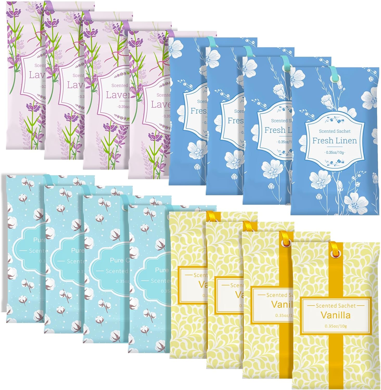 SCENTORINI Sachets for Drawers and Closets, Sachets Bags Long-Lasting, 16 Pack,Wardrobes, Lavender Linen Vanilla Cotton, Home Fragrance Sachet for Closet, Drawer, Wardrobe
