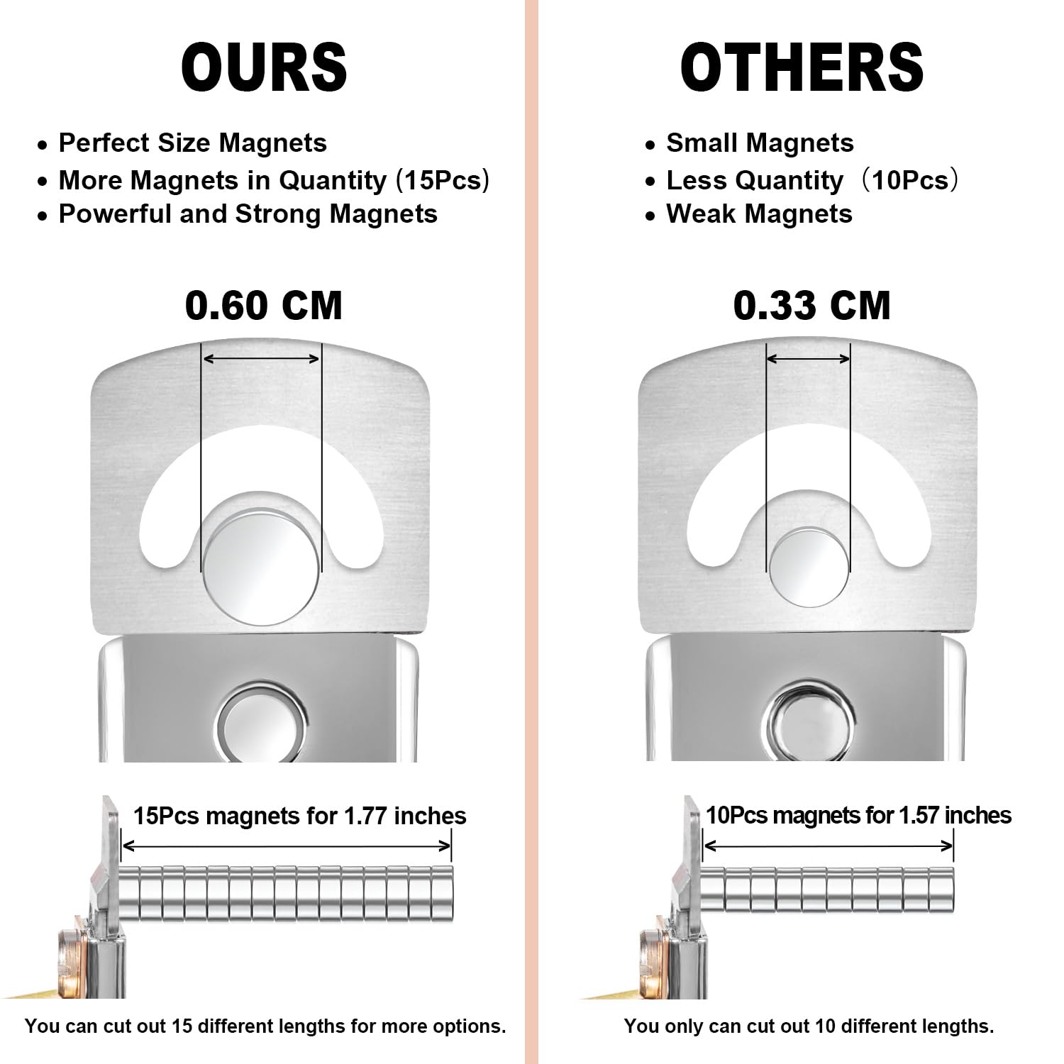- ✂️Powerful Magnet Sizers -- Easiest nail hack to get your tips the same length in secons!Our magnets have a total length of 1.6 inches, the height of each pcs is 0.14 inches, you can adjust the desirable length by using different numbers of magnets.If you are worried that the magnets will move, you can fix the first magnet with glue on the clipper.