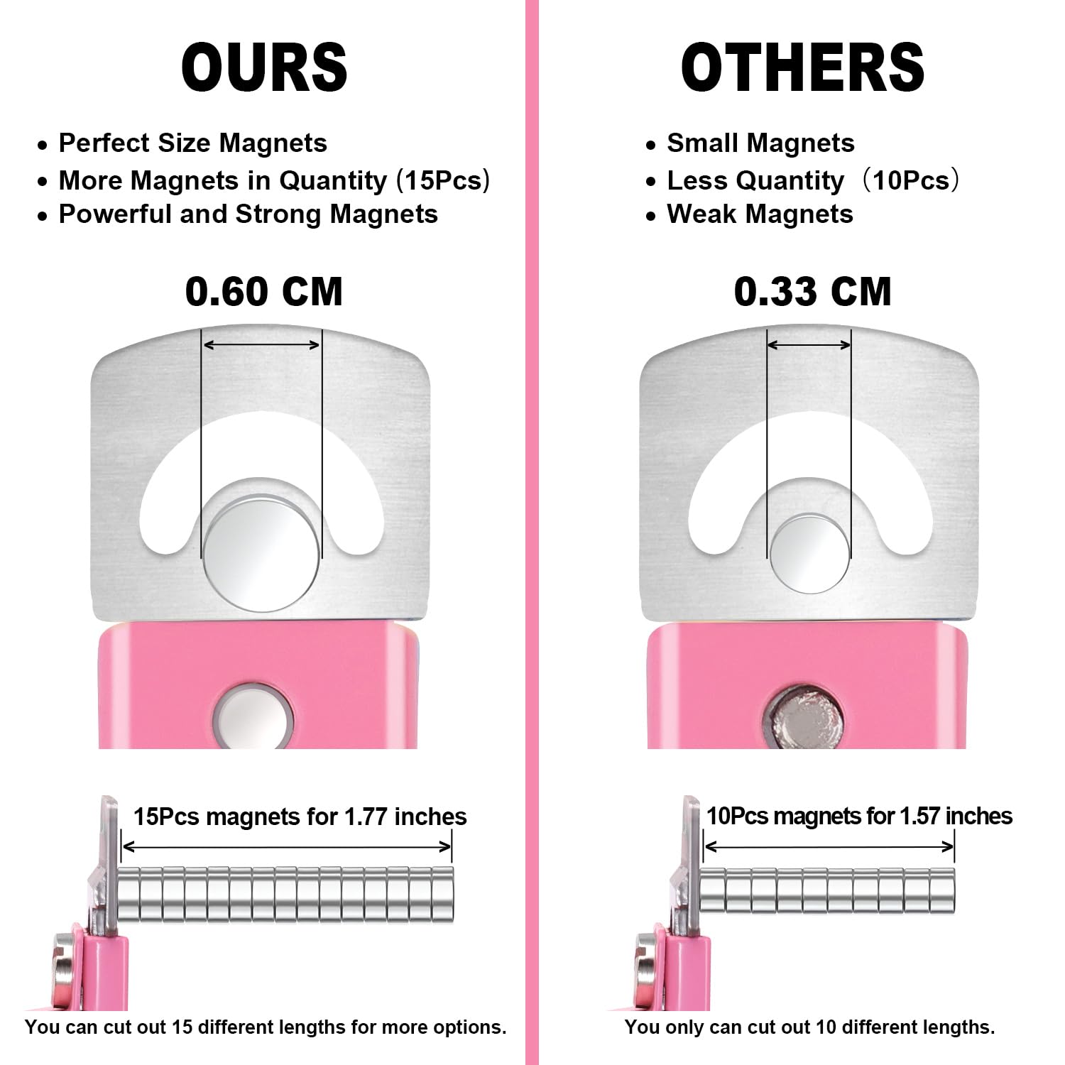 - ✂️Powerful Magnet Sizers -- Easiest nail hack to get your tips the same length in secons!Our magnets have a total length of 1.6 inches, the height of each pcs is 0.14 inches, you can adjust the desirable length by using different numbers of magnets.If you are worried that the magnets will move, you can fix the first magnet with glue on the clipper.