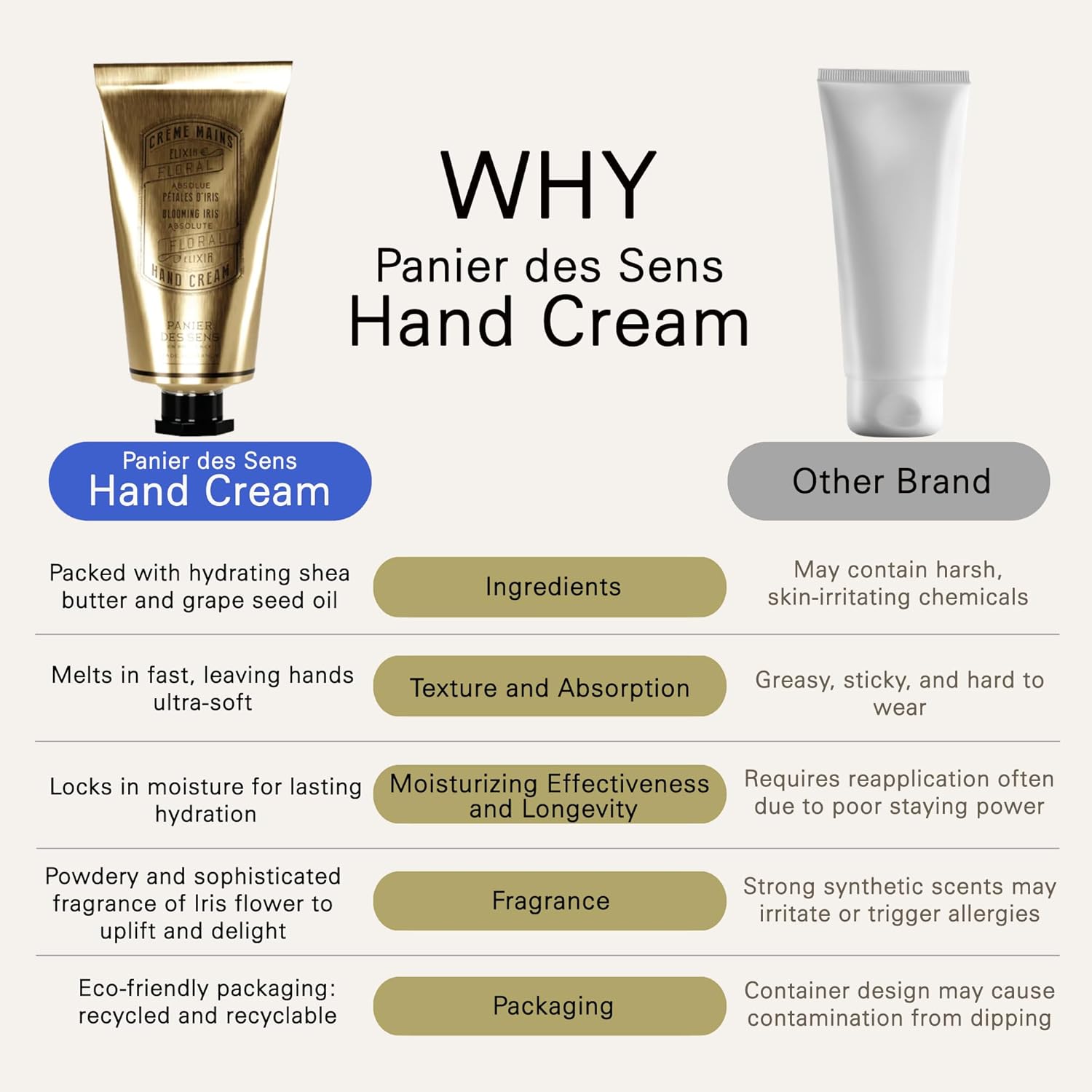 Panier des Sens - Hand Cream for Dry Cracked Hands - Blooming Iris Hand Lotion with Shea Butter & Olive Oil - Vitamin E Skin Moisturizer with 97% Natural Ingredients - Made in France, 2.5 fl oz