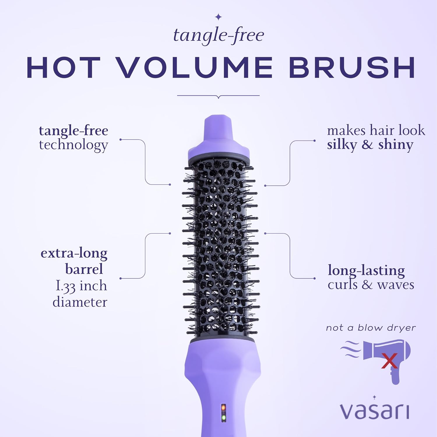 Vasari Extra-Long Round Thermal Brush 1.3 Inch | Curling Brush Iron with Ionic Ceramic Barrel for Creating Loose Curls and Volume | Hot Roller with Tangle-Free Technology | NOT A Hair Dryer