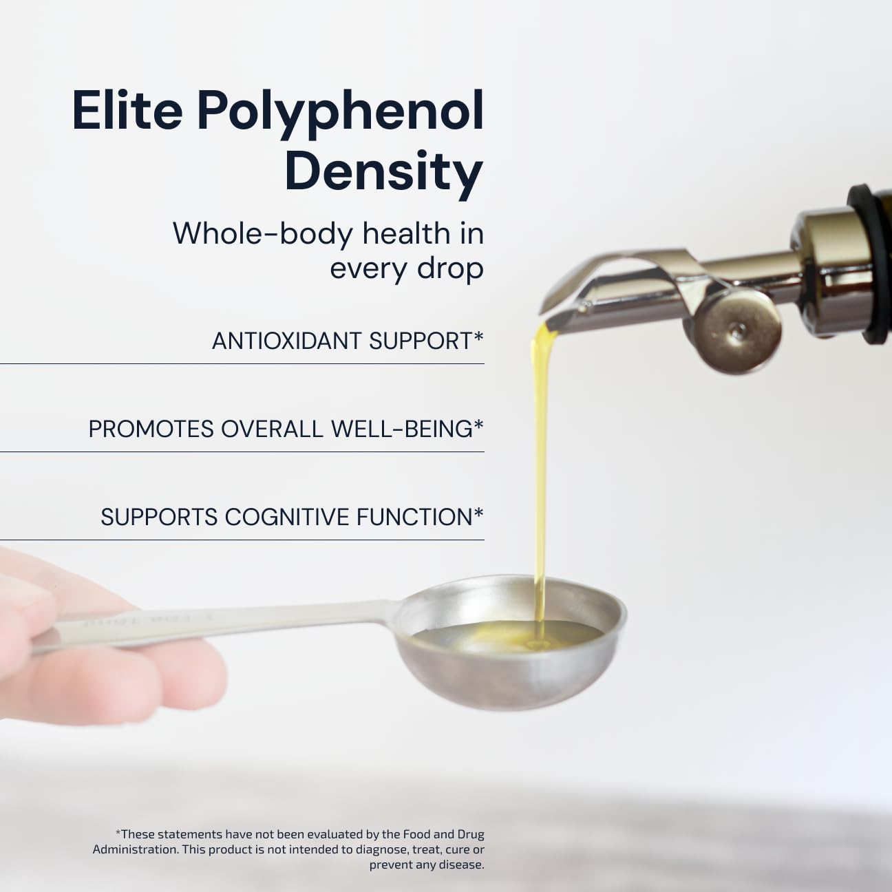 - High Polyphenol Extra Virgin Olive Oil: Premium cold pressed EVOO with 400+ mg/kg polyphenols and hydroxytyrosol, made from early-harvest olives for robust taste and quality.