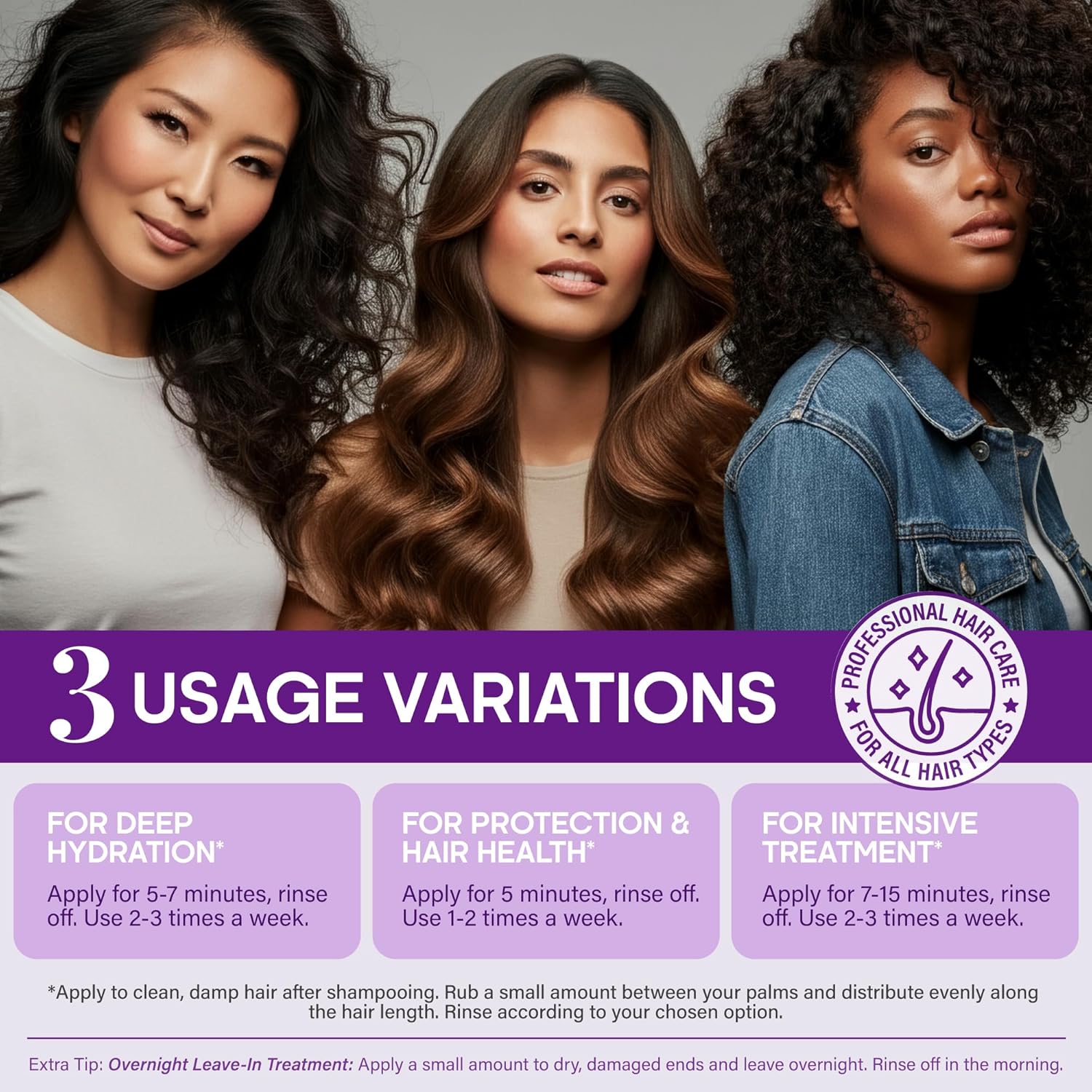 - 💜 PROFESSIONAL HAIR CARE AT HOME — this anti‑frizz deep conditioning mask delivers salon‑quality hydration in just 7 minutes, transforming dry, brittle hair into smooth, shiny, and manageable locks.