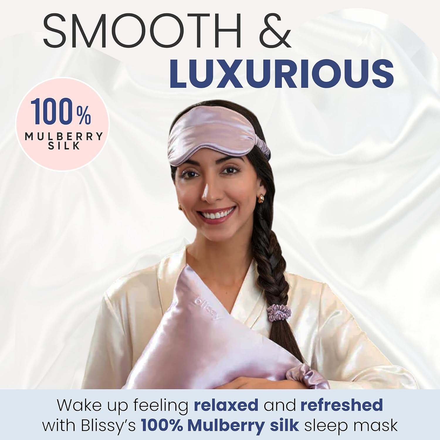 - TOTAL BLACKOUT - If you're looking to completely block out the light, our Blissy Silk Sleep Mask is perfect for you! Made with 100% pure Mulberry silk and 22 momme 6A grade fibers, this mask will keep the light out and help you get a good night's sleep.