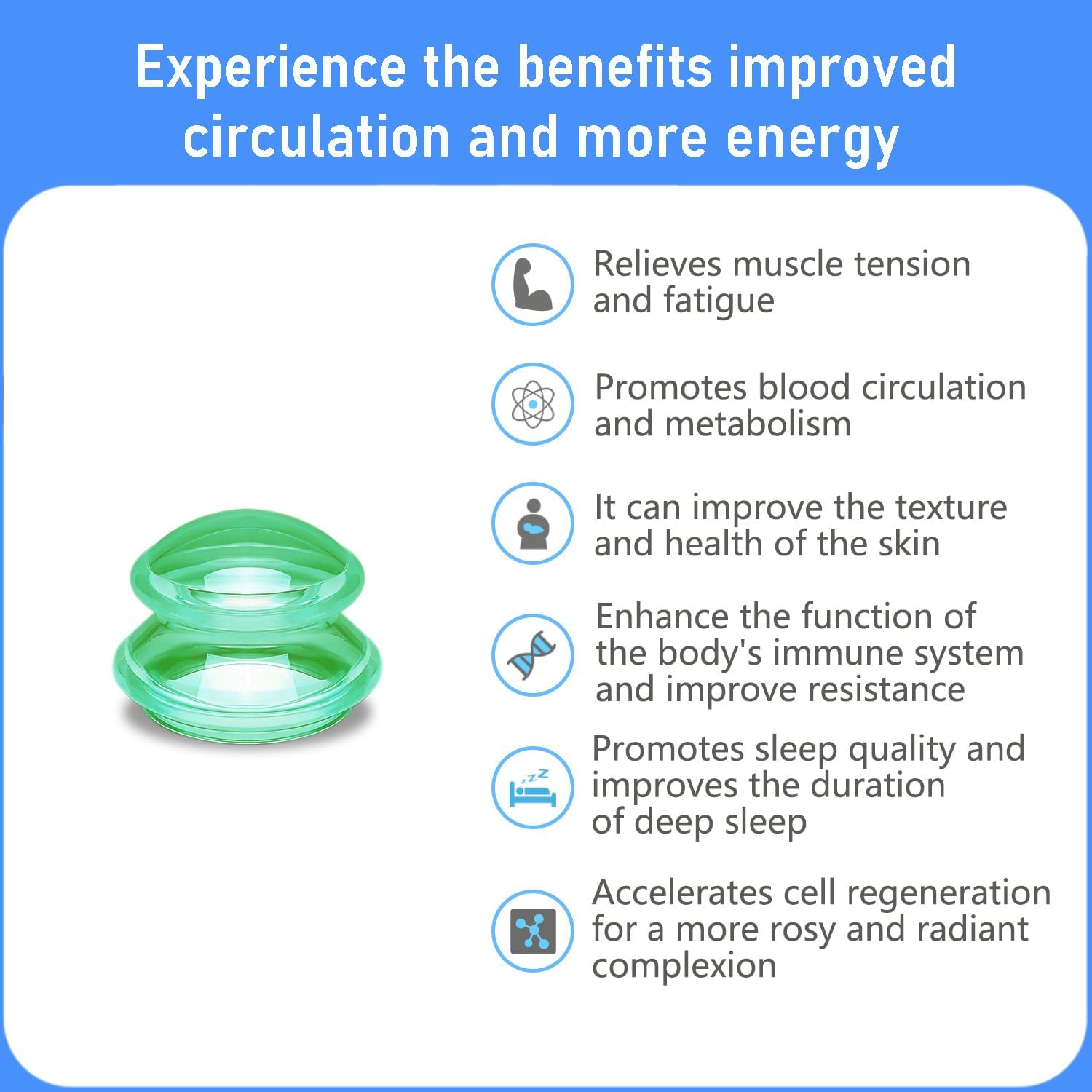 - Cupping size: L size 75mm in diameter, this size of cupping is suitable for face cupping, arm and other positions. Can bring you the effective effect of firming and toning, slimming, stretch marks and cellulite.