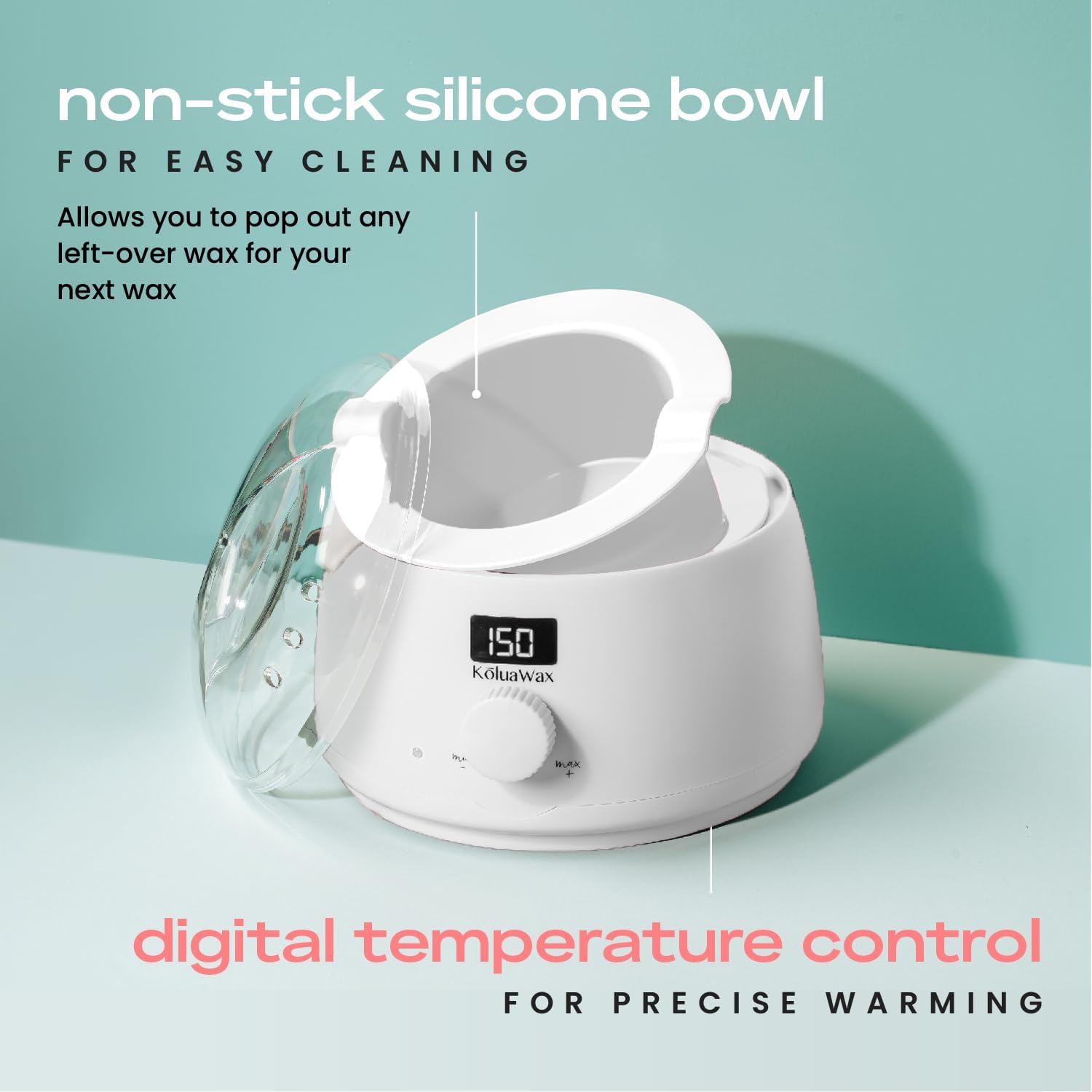 - PREMIUM WAXING KIT INCLUDES: Premium Digital Wax Warmer, Removable Silicone Bowl, 4 Bags of Wax Beads, Pre-Wax Oil, Post-Wax Oil, 20 Large Applicator Sticks, 10 Mini Brow Sticks, and a How-To Guide