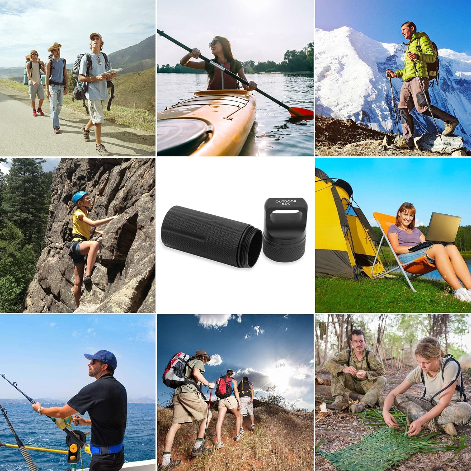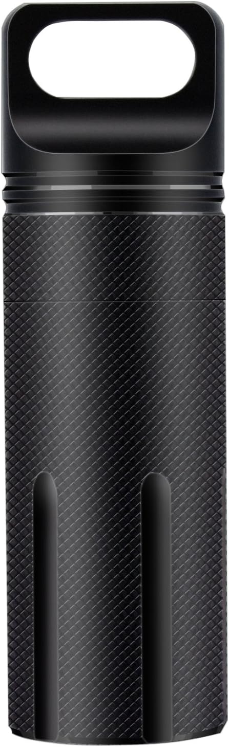 SHD Outdoor EDC Pill Box Container,Black Aluminum Alloy Single Chamber Capsule Waterproof Pill Holder Case for Hiking Camping