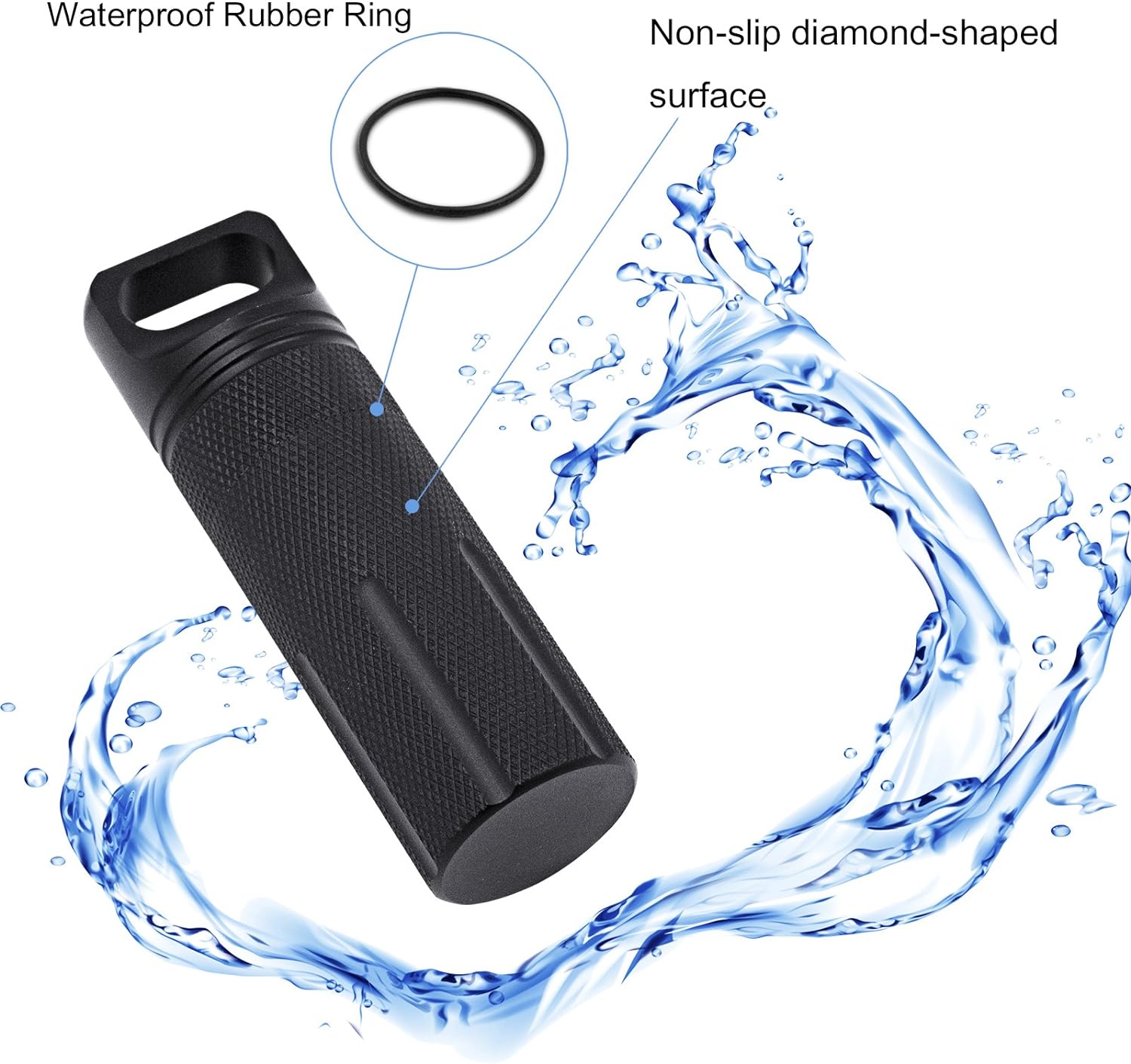 - 100% waterproof. The large rubber ring at the screw mouth adopts a built-in design. Under tightening conditions, the rubber ring can be hidden and protected. This also allows the pill case can be completely immersed in water while the inside remains dry.