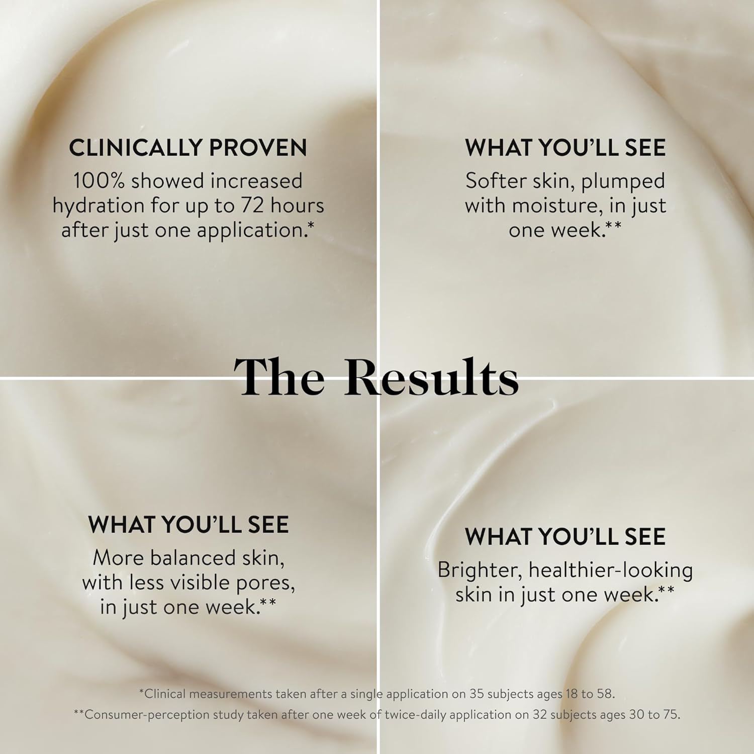 - Skin Hydration: This lightweight moisturizer delivers up to 72 hours of moisture after a single application while strengthening the skin’s moisture barrier, reducing shine, and supporting longer-term benefits like brightening, plumping and smoothing.