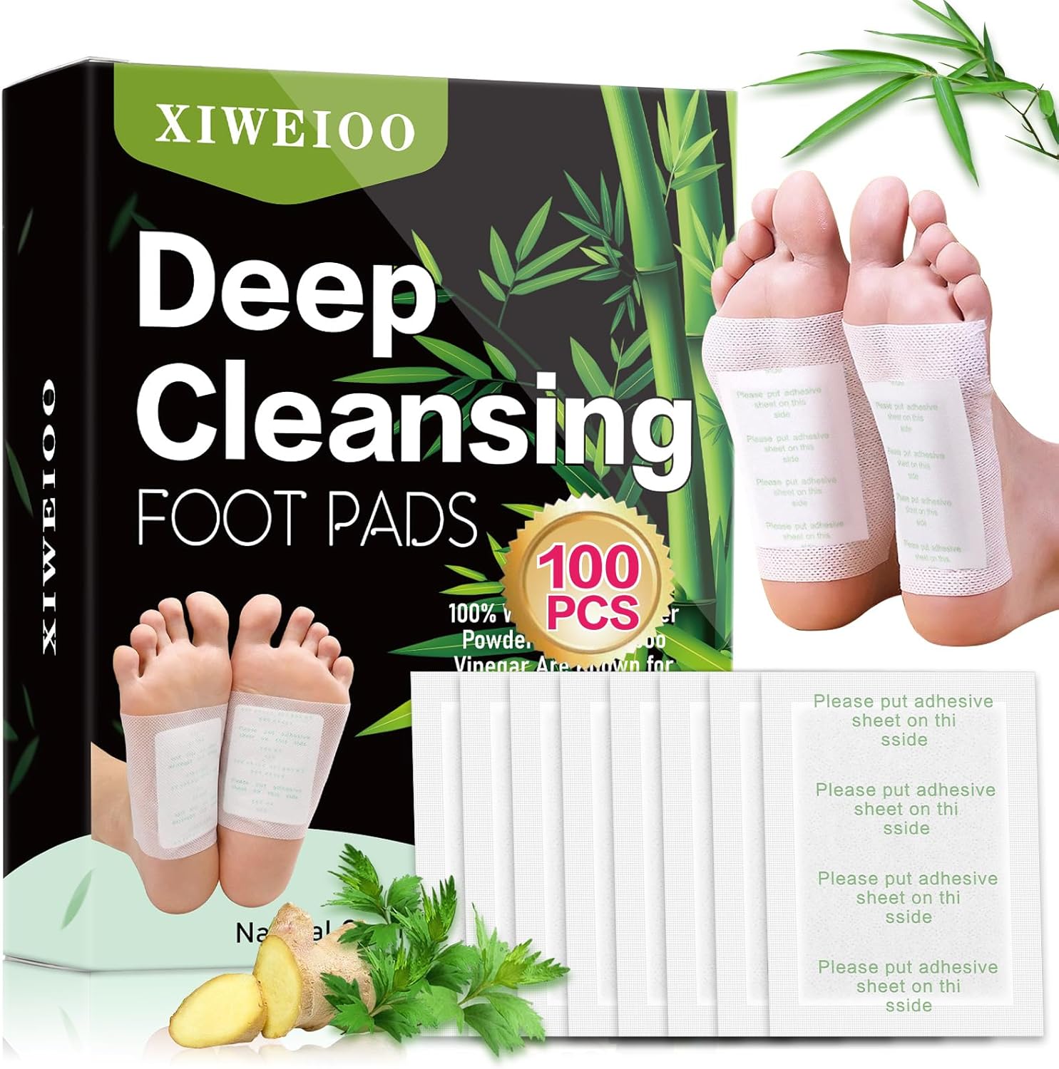 100 Pack Foot Pads, Ginger Oil Bamboo Charcoal, Foot Care Patch Message Deep Cleansing for Stress Relief, Better Rest, Feet Health Patches, Relaxing Muscles