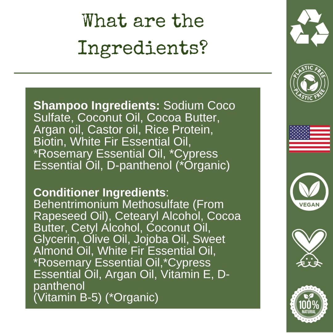 - SHAMPOO BAR AND CONDITIONER SET: Growth and Volume: Powerhouse trio nourishing, castor oil, biotin and rosemary, supports healthy hair growth and thickness. Ideal for gray hair and safe on color treated hair.