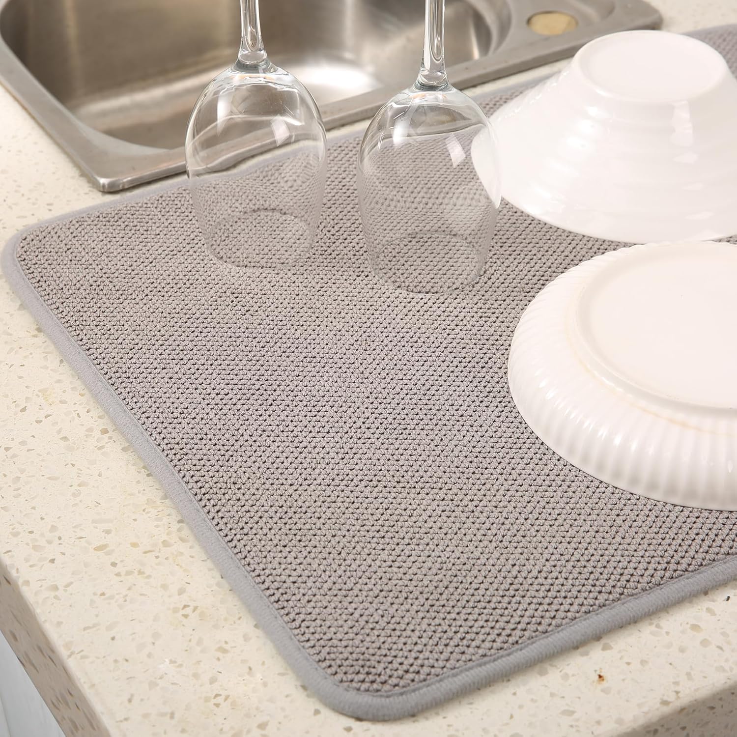 2 Pack Microfiber Dish Drying Mat for Kitchen Counter,Ultra Absorbent Dish Drainer Mat ,Dish Drying Pad , Dish Rack Mat 20×15 Inch (Gray)