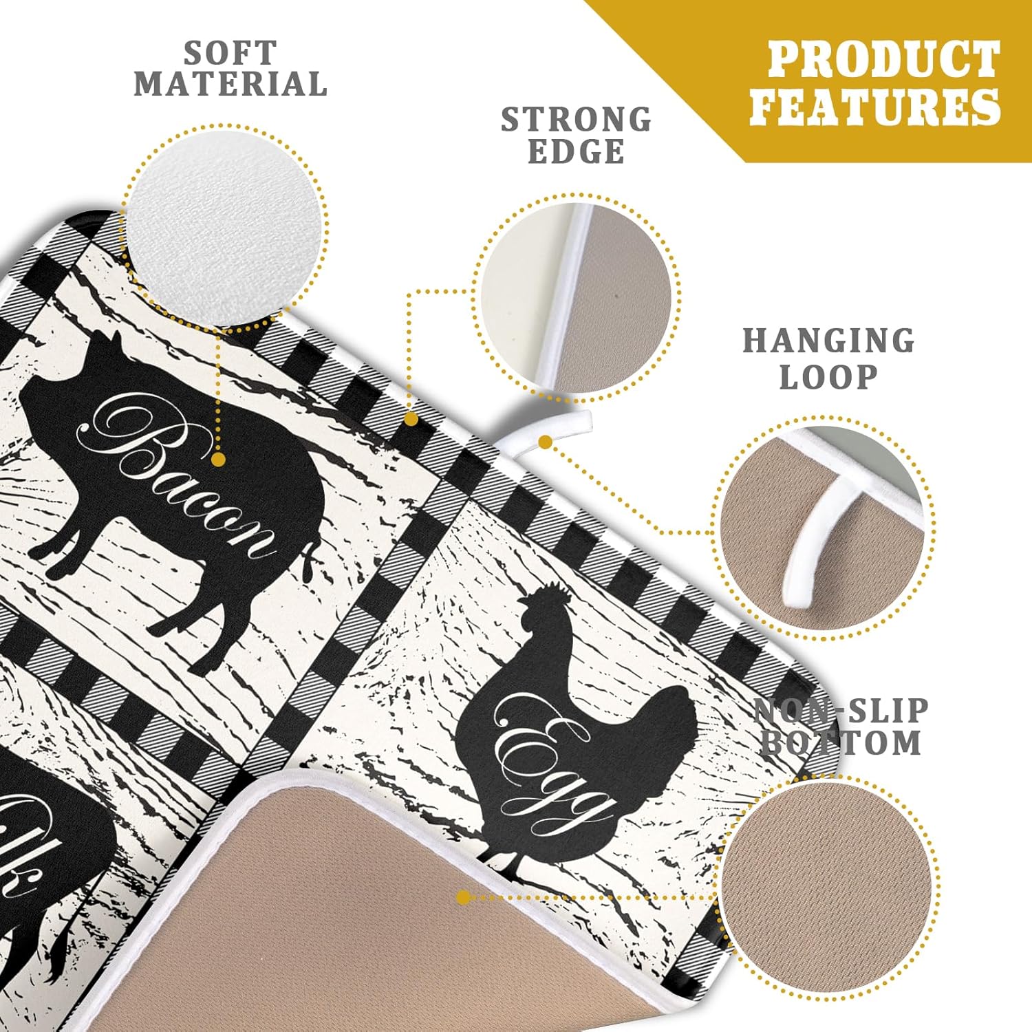 Farmhouse Animal Dish Drying Mat Buffalo Plaid Drainer Rack Mats Fast Dry Absorbent Kitchen Countertop Protector Dishes Pad 16x18 Inch
