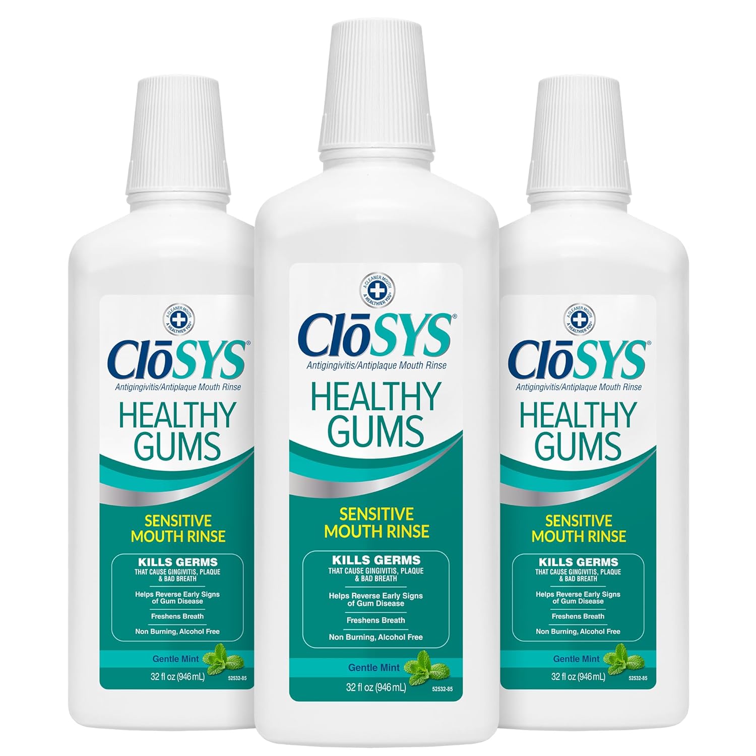 CloSYS Healthy Gums Mouthwash 32 Fl Oz, Pack of 3, Antiplaque, Anti-Gingivitis Mouthwash, Non-Burning, Non-Irritating