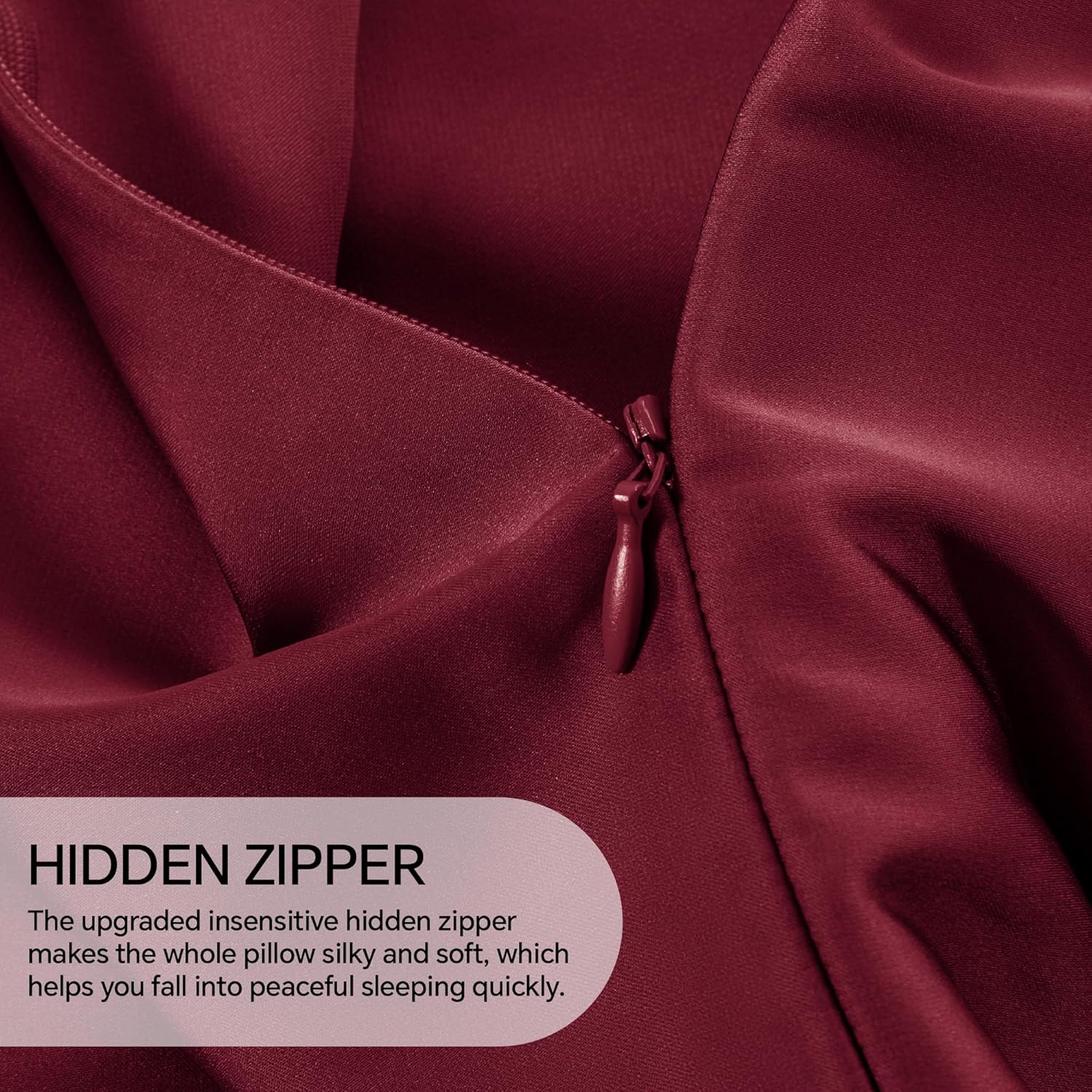 INFIIXSO Mulberry Silk Pillowcase for Hair and Skin, Silk Pillow Cases Queen Size with Hidden Zipper 20x30 Inches, Super Smooth and Soft Cooling Pillow Cases for Hot Sleepers(Burgundy, 1 Pack)