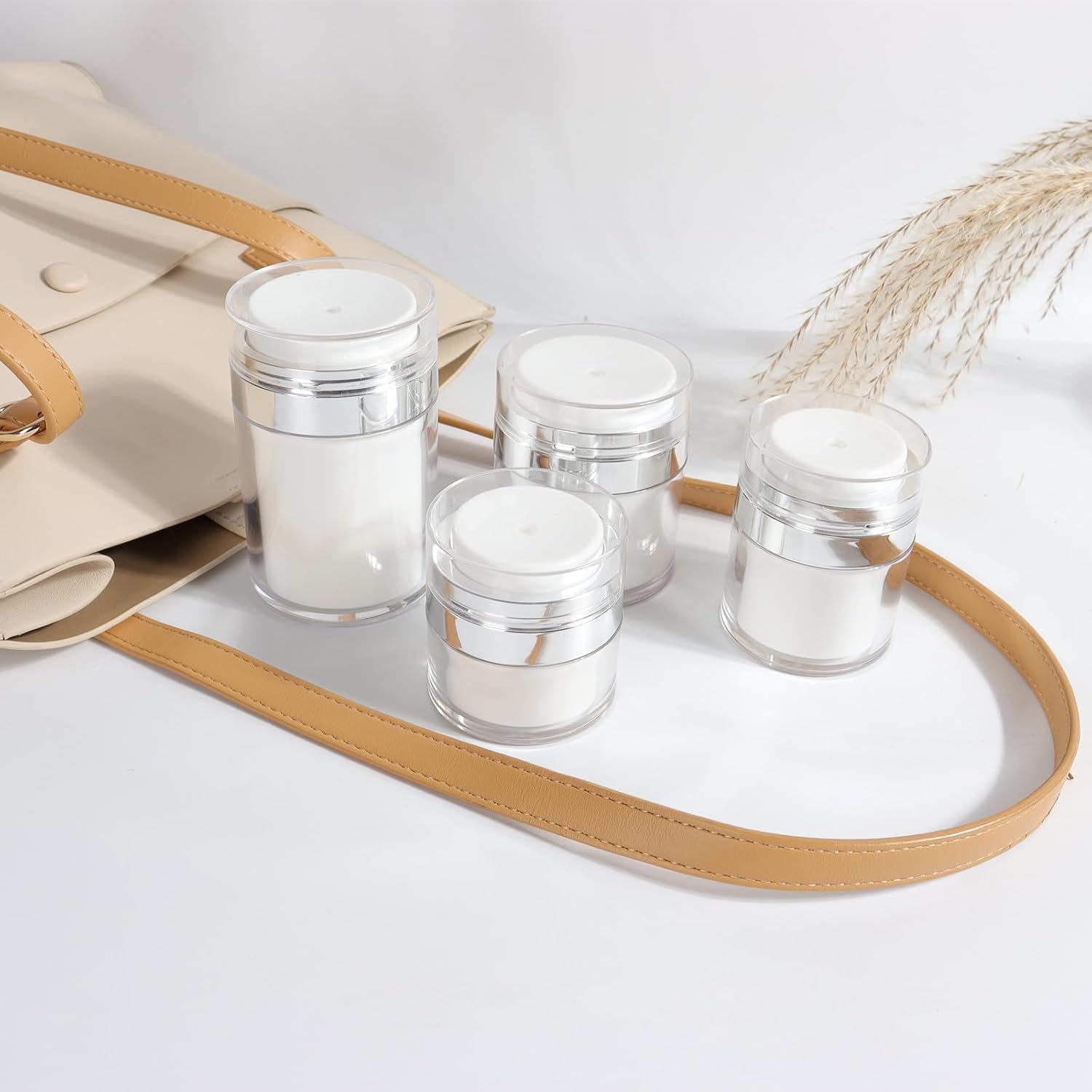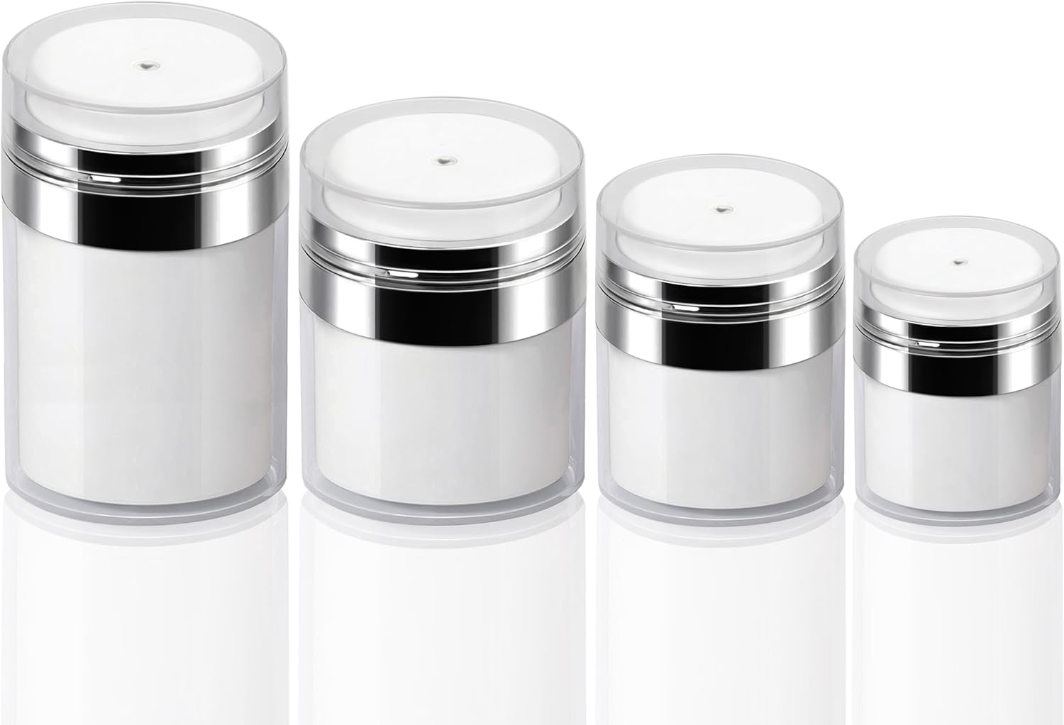 4Pack Airless Pump Jars Mixed(0.5oz+1.0oz+1.7oz+3.5oz) Lotion Dispenser Bottle with Pump, Moisturizer Travel Containers for Skincare Face Makeup