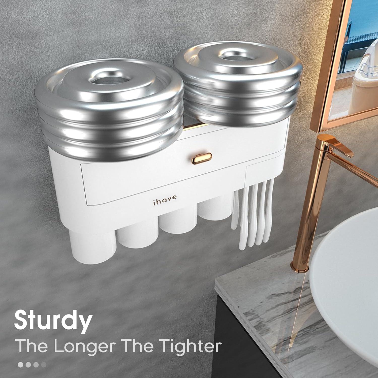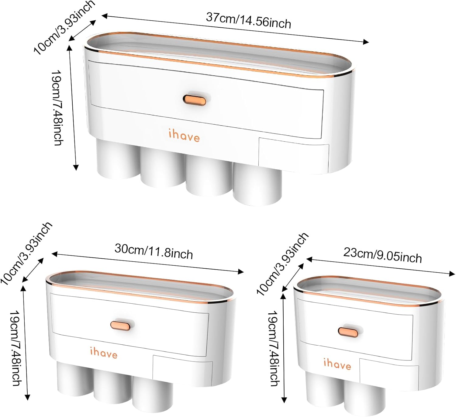 iHave Toothbrush Holders for Bathrooms, 4 Cups Toothbrush Holder Wall Mounted with Large Capacity Drawer and Tray - Bathroom Storage & Bathroom Organizer