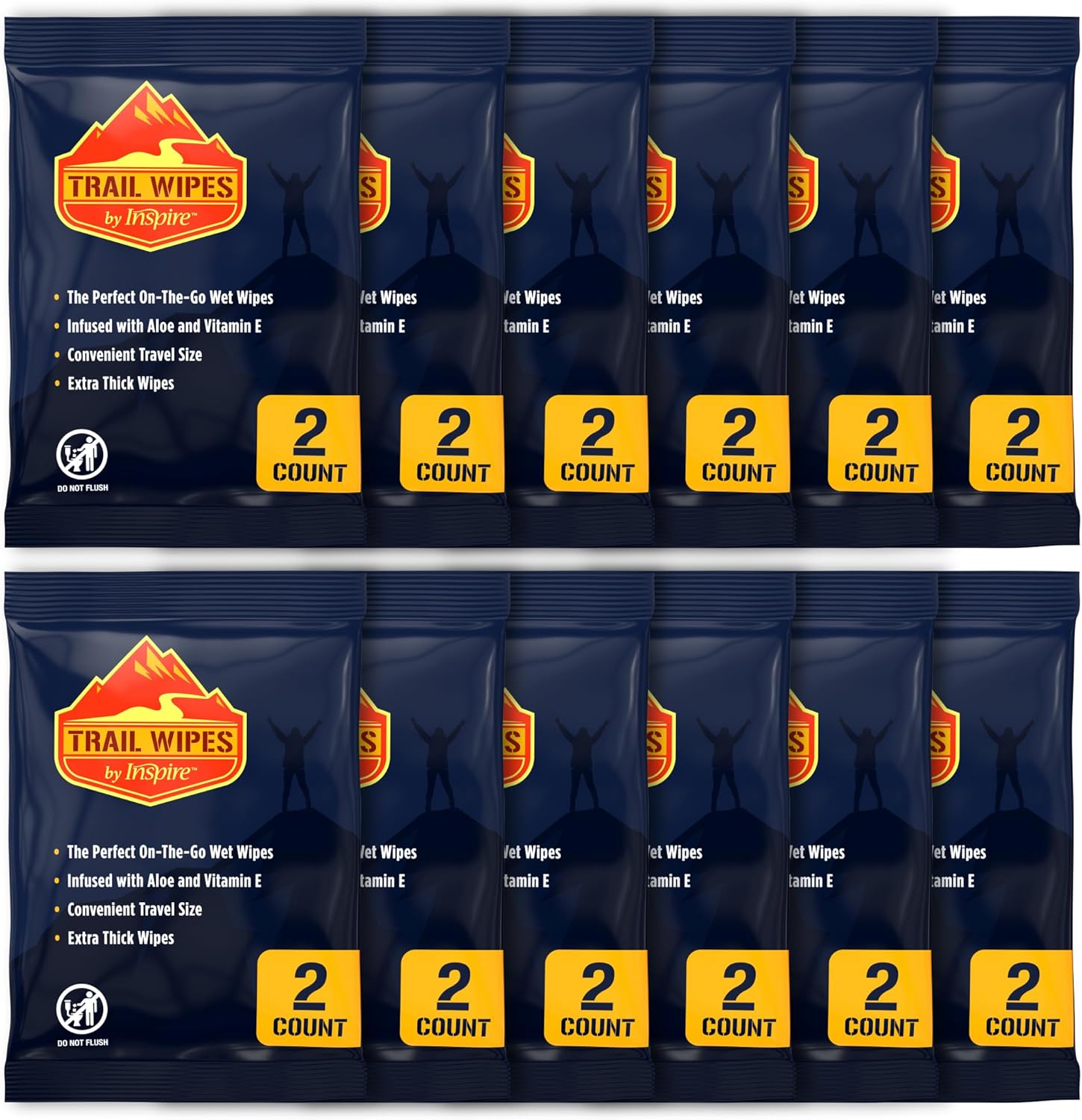 Inspire Trail Wipes | Camping Wipes Body Wipes Adults | Biodegradable Wipes For Camping, Travel, Gym With Aloe And Vitamin E | No Rinse Bathing Shower Wipes Women Or Men
