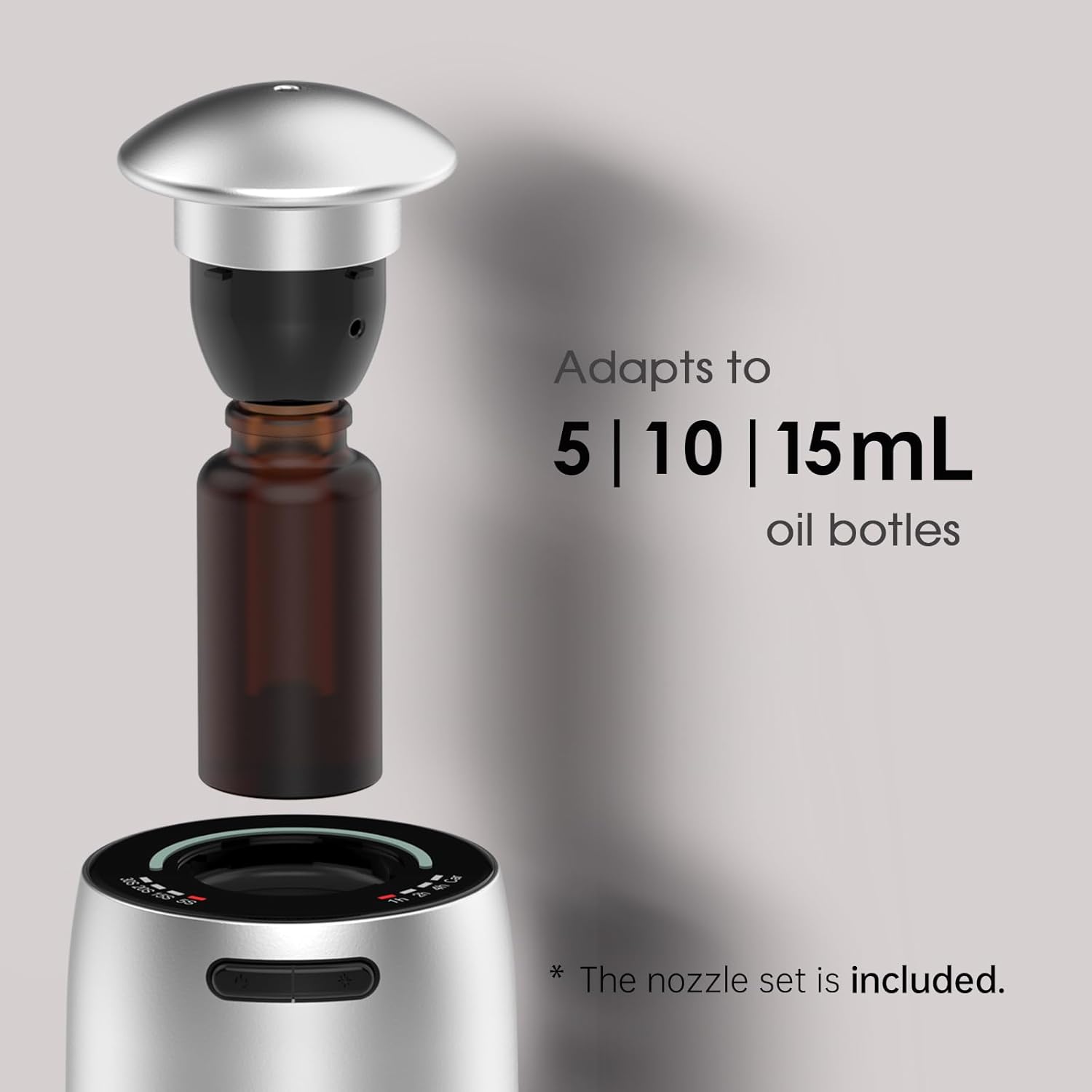 waterless Diffuser for Essential Oil Battery Operated Nebulizer, Night Light, 4 Mist Levels,Timer and Auto on Off Function for car,Home,Room,Office,Covers 100 Sq.Ft, Aluminum Alloy Material