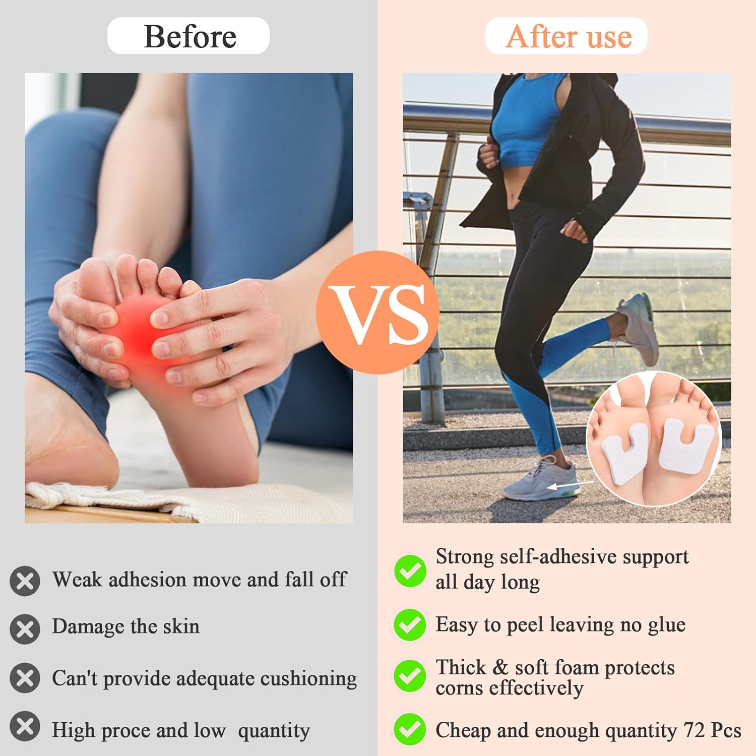 - 72-Pack for Long-Lasting Relief: Metatarsal pads for feet with a total of 72 callus pads in each pack, you are well-equipped for extended periods of use. Whether for personal use or professional foot care, a sufficient quantity to meet your needs for replacement and use in daily life. These cushioning inserts alleviate pressure and pain by protecting the hard layers of skin from friction or brushing off against socks or footwear.