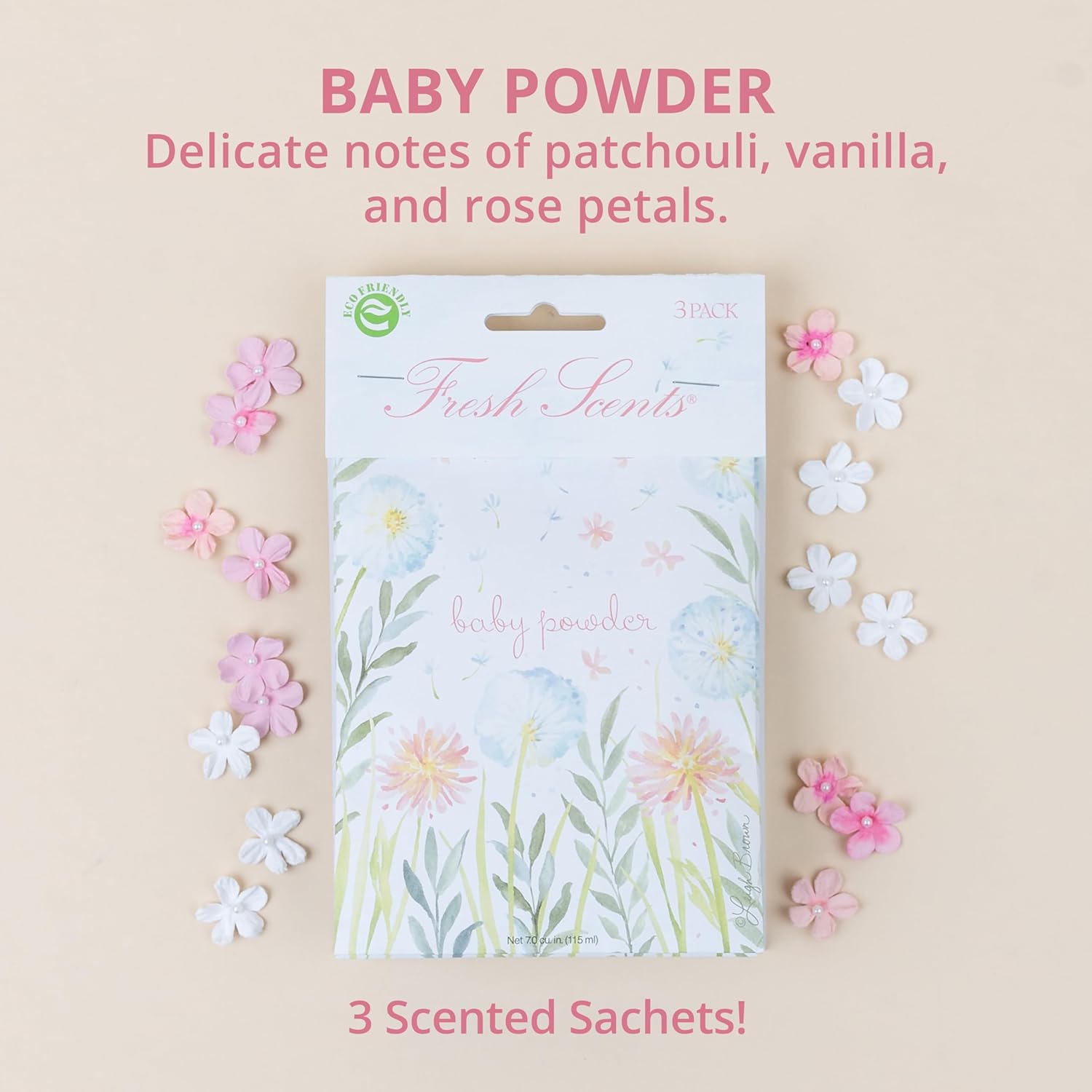 WILLOWBROOK | Fresh Scents Scented Sachet Packet | Baby Powder | Air Freshener Bags for Drawers, Closets, Cars | 6 Pack | Long Lasting Home Fragrance