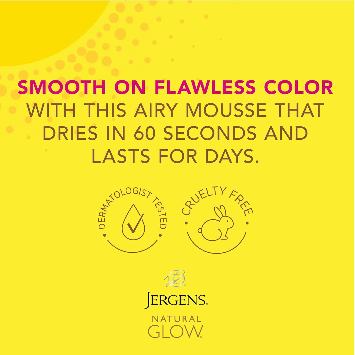 - TROPICAL, FRUITY SCENT, DERMATOLOGIST-TESTED - Jergens Natural Glow Mousse gives you an island escape with its tropical, fruity fragrance, crutelty free, and fast-drying formula