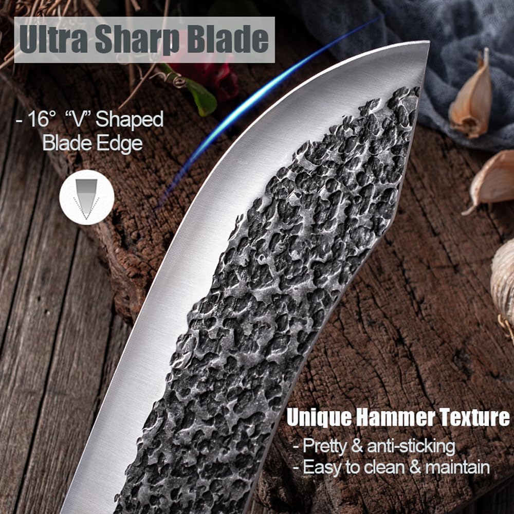 - EASY TO MAINTAIN - Due to the forged butcher knife has higher carbon content, please pay attention to clean the knife, and acidic or alkaline substances cannot stay on the blade for a long period. Such knife shall be wiped dry after cleaning. But high carbon steel has a better ability to maintain sharp edges than stainless steel. It will assist you with every perfect cut. Reasonable maintenance after every use will last a long lifetime.