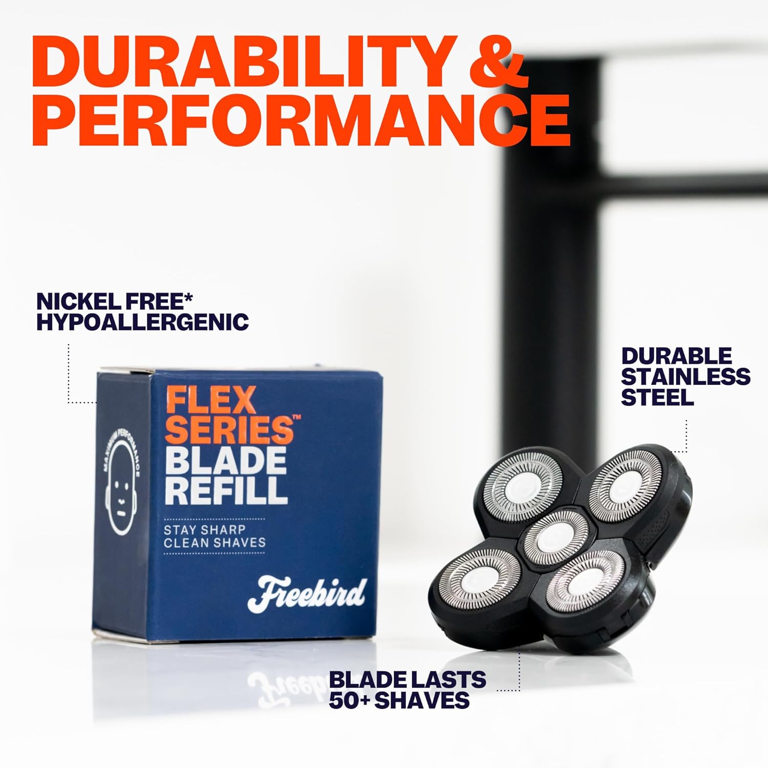 Freebird FlexSeries Official Blade 3 Pack Refills - No Irritation, Razor Bumps or Ingrown Hairs, Ultra-Sharp, Durable, ScalpSafe Design, QuickSnap Install, for 50 Shaves, Compatible with FlexSeries
