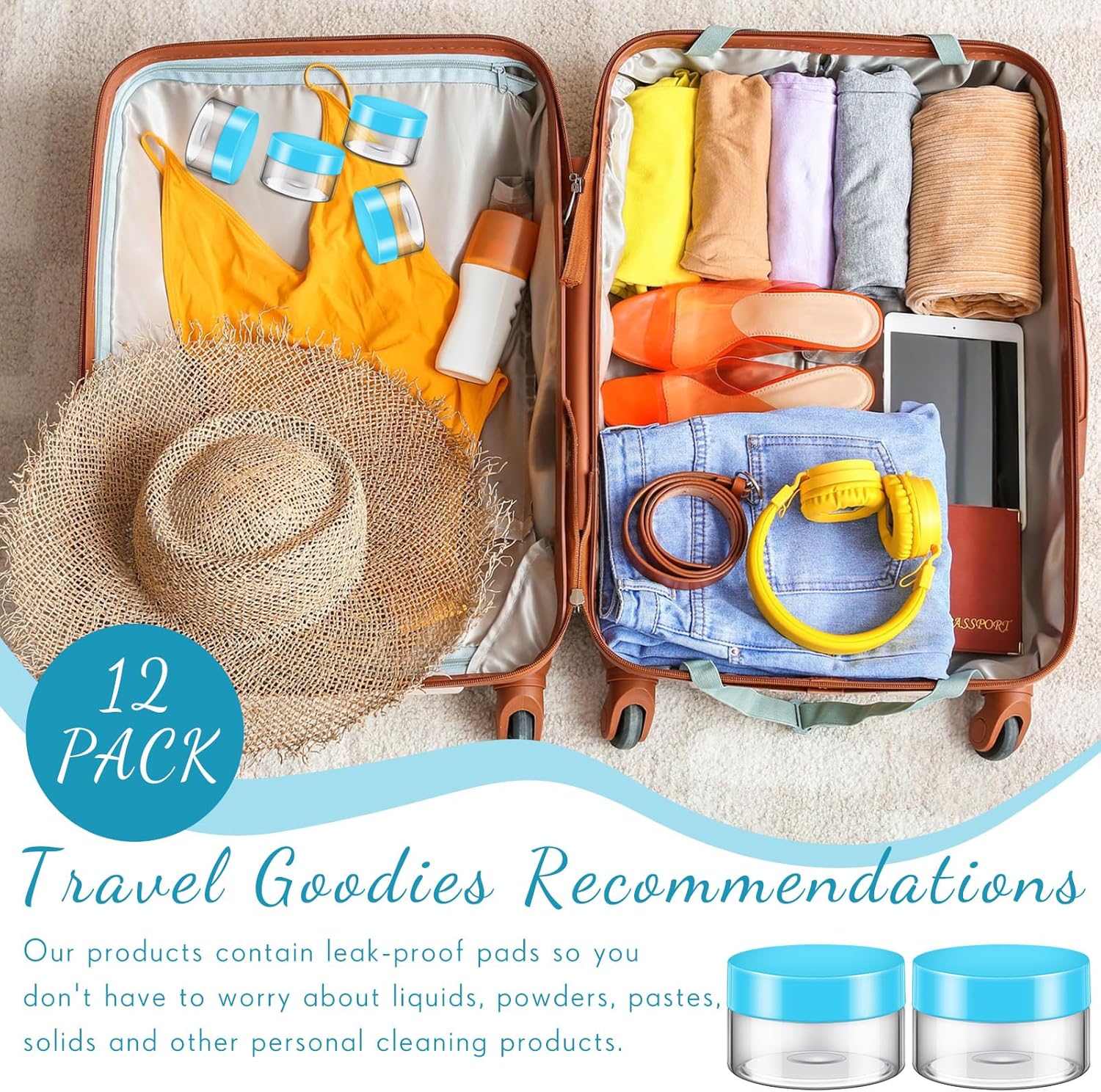 SATINIOR 12 Pack Plastic Container Jars with Lids Round Clear Travel Cosmetic Container Jars for Toiletries, Lotion, Cream, Ointments, Makeup, Rhinestone, Samples, Kitchen Storage(2 oz,Blue)