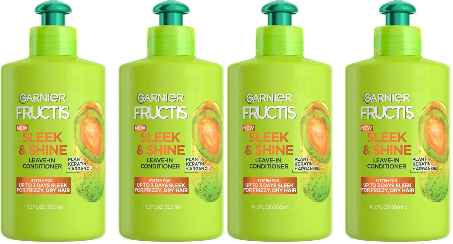 - Garnier Sleek and Shine Leave In Conditioner: Nourishing hair cream with argan oil penetrates into frizzy, dry hair to smooth each strand; Up to 3 days sleek and long lasting frizz control even in 97 percent humidity