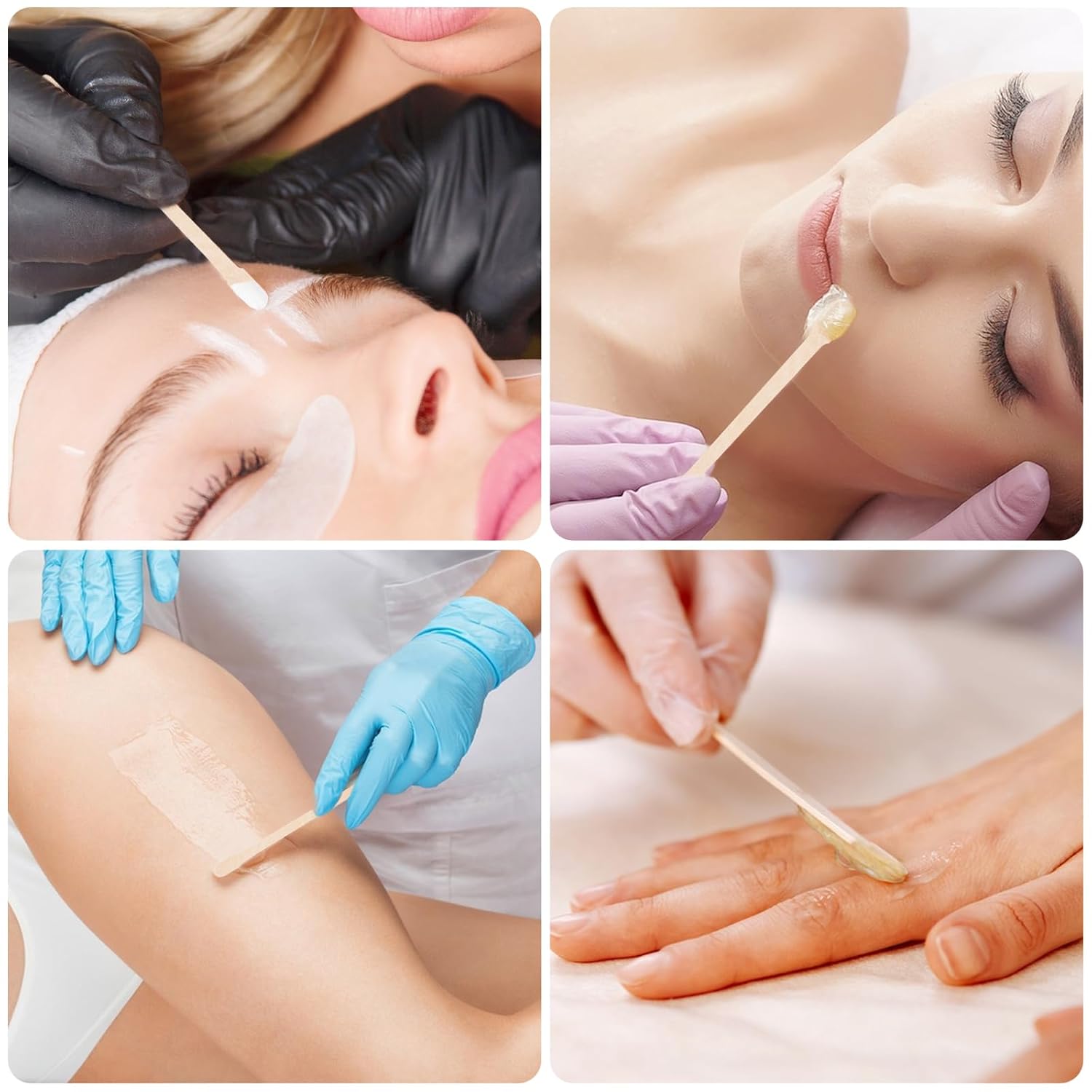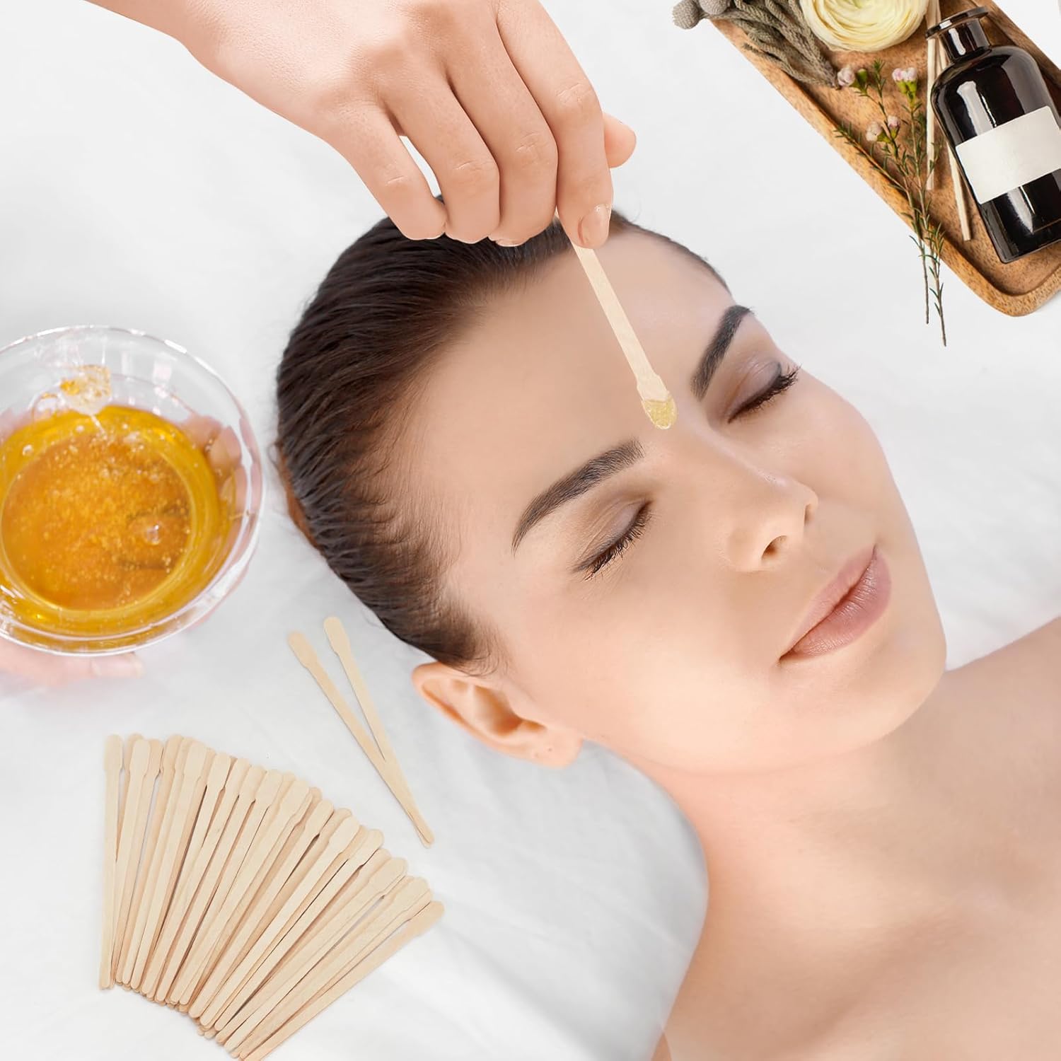 - These slender wooden sticks are perfectly suited for precise waxing of delicate areas such as eyebrows, lips, and other areas requiring meticulous attention. They ensure that the waxing process achieves aesthetically pleasing results while minimizing discomfort, providing a gentle and effective beauty experience.