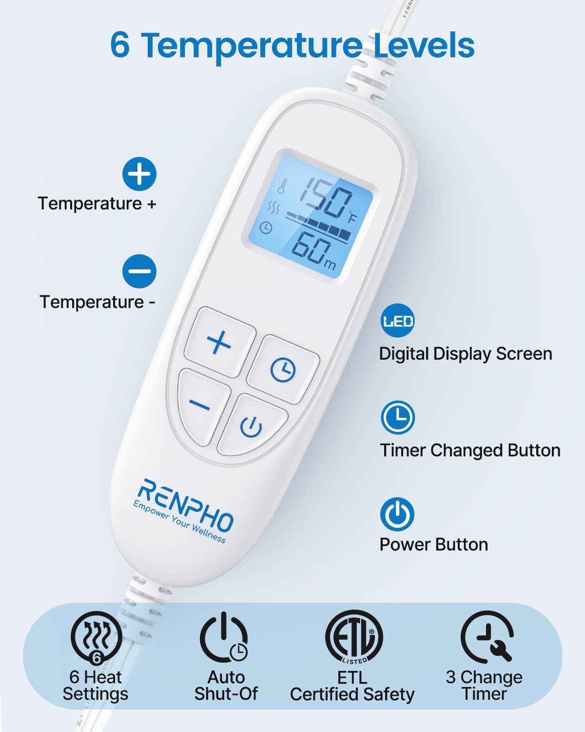 - Heartwarming Gifts: It's a warm and practical birthday gifts for women men mom dad and seniors. RENPHO heat pad for pain relief is really a new wave of holiday gifts like christmas gifts for women men, valentines day gifts for her him, mothers day gifts, teacher appreciation gifts, fathers day dad gifts that can helps them unwind after a hard day at work. It's also an ideal retirement or anniversary gifts for women men.